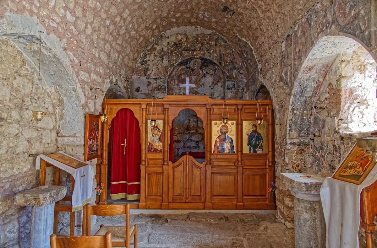 The complex also contains religious buildings reflecting its varied history, such as Venetian churches and Ottoman homes. Notably, at least two small mosques have been identified; one includes a cylindrical minaret with a spiral staircase, evidencing Islamic architectural influence during Ottoman rule.