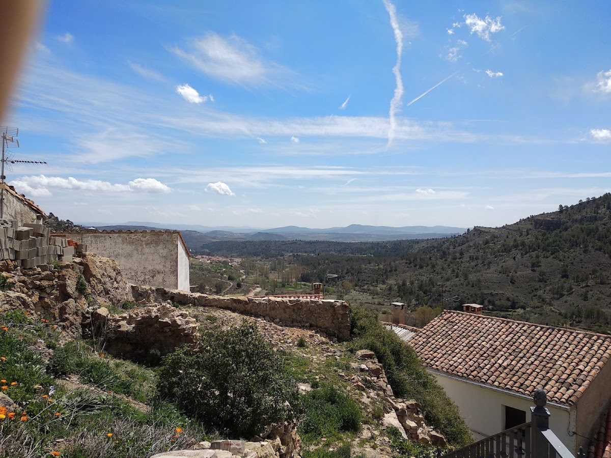 Additionally, the castle enclosure houses a potable water reservoir that continues to serve the local community. From the elevated summit, one can observe an extensive view across the southwest landscape, including the Algarra plain and the river bearing the town’s name. Nearby villages such as Casas de Garcimolina and Santo Domingo de Moya appear in the distance, along with the ruins of Moya fortress. The castle ruins and the town itself lie just above a local road connecting major highways in the region, underscoring the strategic placement of the site within its broader geographic context.