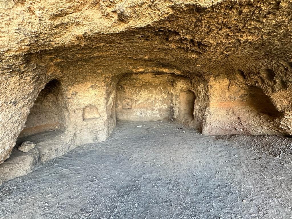 Within the rooms, some ceilings are vaulted with pointed arches, and the walls contain triangular or circular niches. These small cavities once held oil lamps, providing light throughout the interior. The upper floors were coated with plaster, and contain a stone and traditional mortar basin roughly seven by three meters in size. This pool was supplied with water through clay pipes half a meter in diameter, locally called “Gong,” indicating a sophisticated approach to water storage and management.