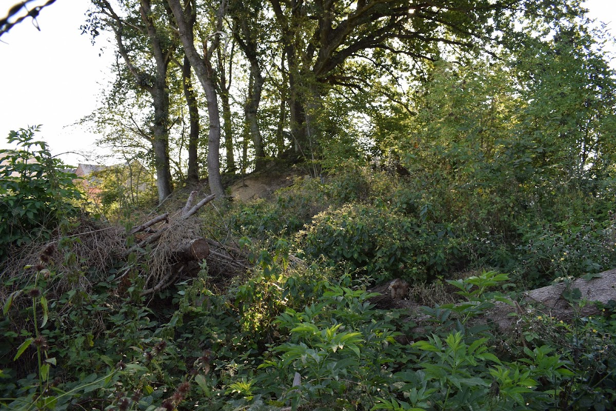 Archaeological finds at the location include two pottery fragments discovered in 1936 near the motte. One shard is a modern glazed piece, while the other is a yellow earthenware fragment tentatively linked to the Pingsdorf ceramic tradition, known from the 11th and 12th centuries. However, the absence of typical red decoration on this piece prevents a precise dating. Additionally, aerial photographs taken by British reconnaissance during the 1940s provide a visual record of the site’s layout, though these images remain unpublished and inaccessible to the public.