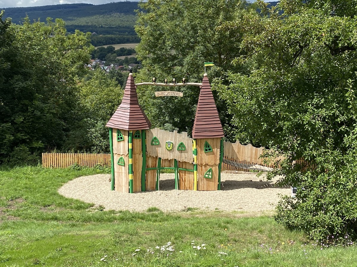 Burg Jesberg occupies a hilltop at approximately 280 meters above sea level, overlooking the surrounding landscape near the historic Fritzlarer Straße trade route. The castle’s construction followed the Romanesque style typical of its era, characterized by robust masonry and a compact layout adapted to the hill’s contours.