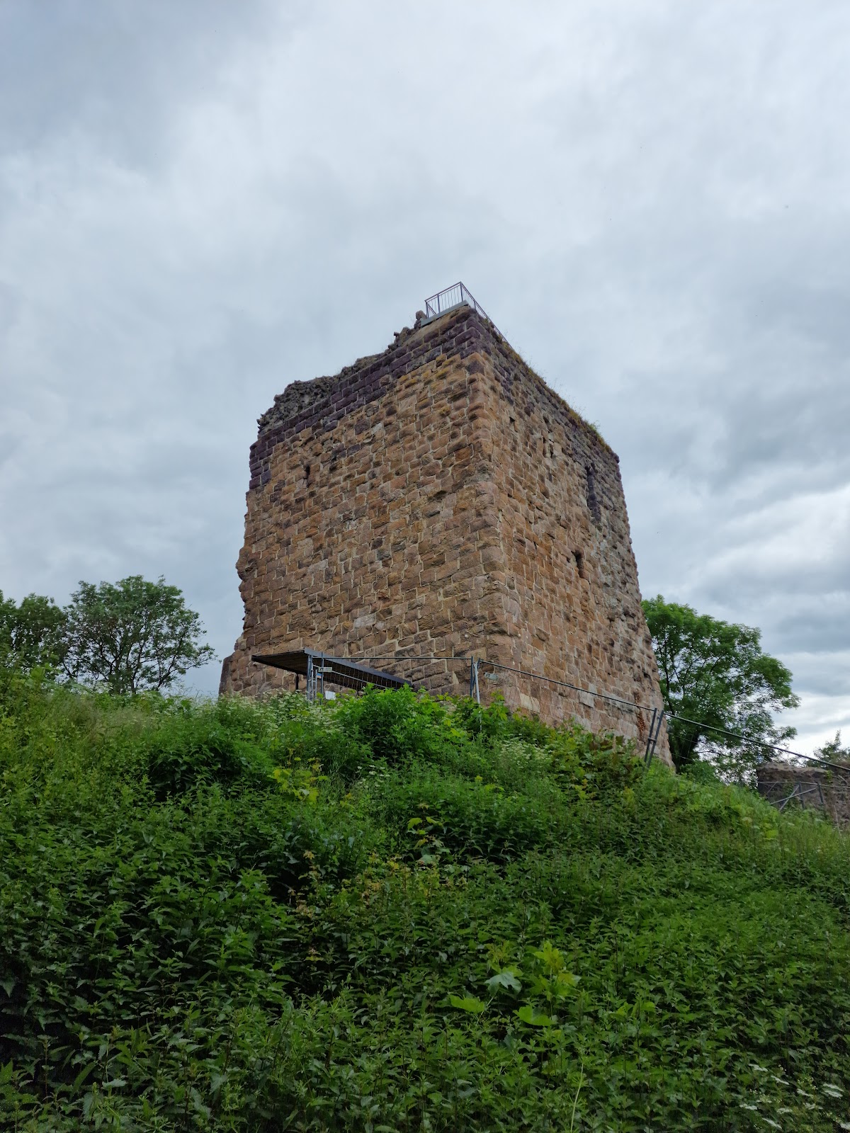 A central feature of the castle is the bergfried, or main tower, notable for its robust walls approximately three meters thick. Originally, access to this tower was gained through a first-floor entrance connected to an adjoining tower annex, a defensive design common in medieval castles to hinder attackers. In the 19th century, this entrance was altered to a ground-level doorway bored through the massive stone walls, making the tower more accessible but underscoring the shift from military use to historic preservation.