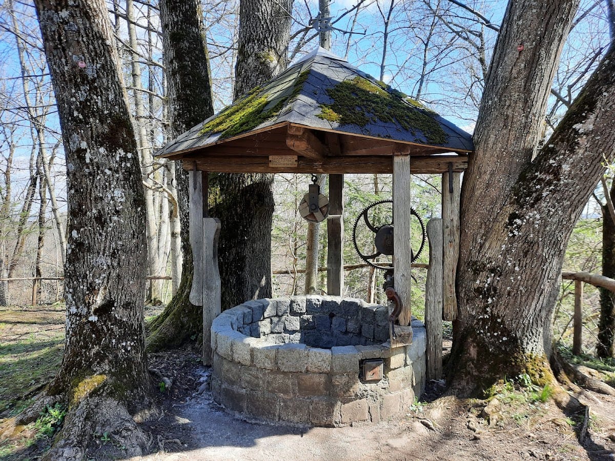 Access to the castle plateau is gained by a footpath climbing from the valley to the southwest. This path runs between the bergfried and a deep well, which reaches about 26 meters in depth and is located approximately 20 meters east of the tower. The well represents a vital resource, ensuring water supply within the castle. Adjacent to the well and westward lies the Amtshaus, positioned close to the artificial neck ditch.