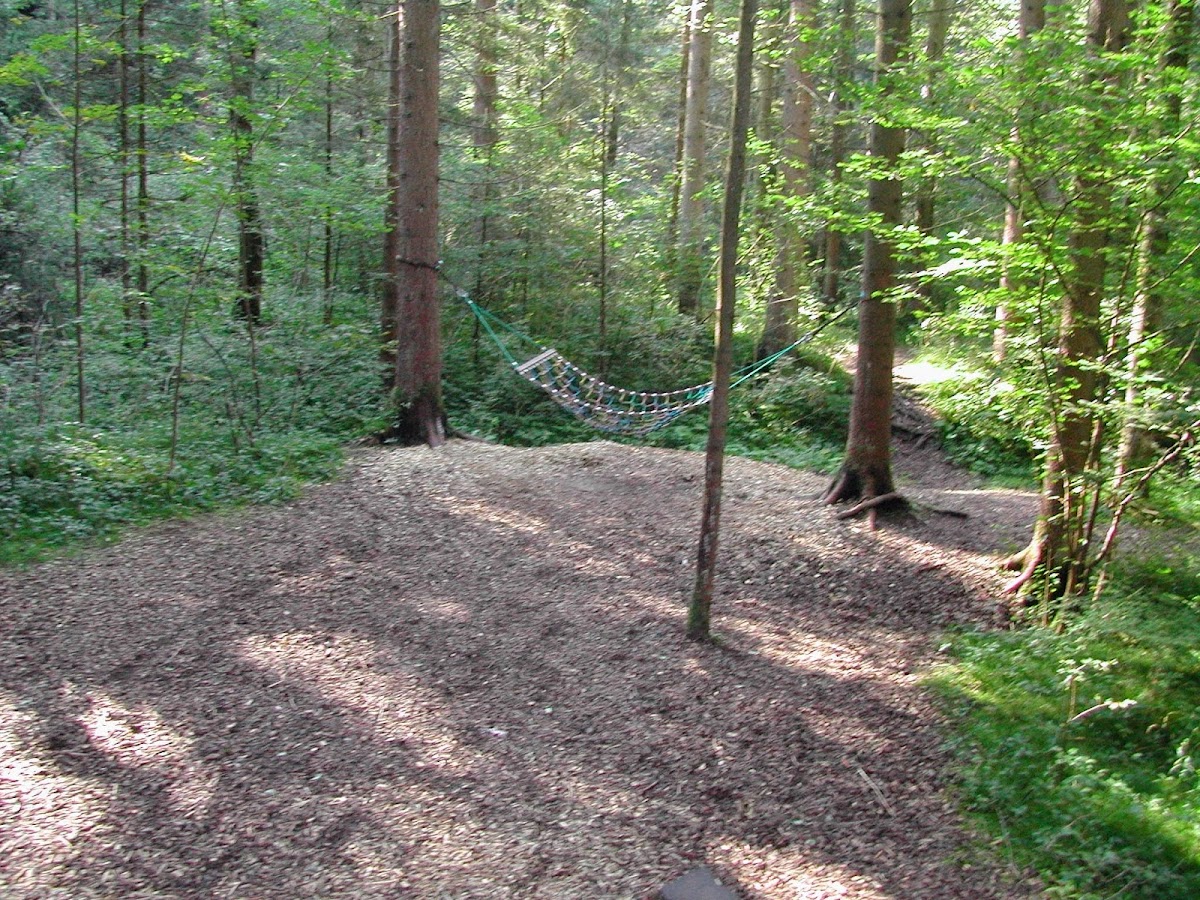 Burg Neuenburg is perched on a wooded hill spur southeast of Durach, naturally shielded on three sides by a loop of the Durach River. The castle’s layout incorporates two defensive ditches cut into the terrain, separated by a rampart that shields the hilltop from the connecting ridge to the north. One of these ditches, especially deep, follows the course of what was originally a natural erosion channel that was later adapted to serve as a moat-like barrier.