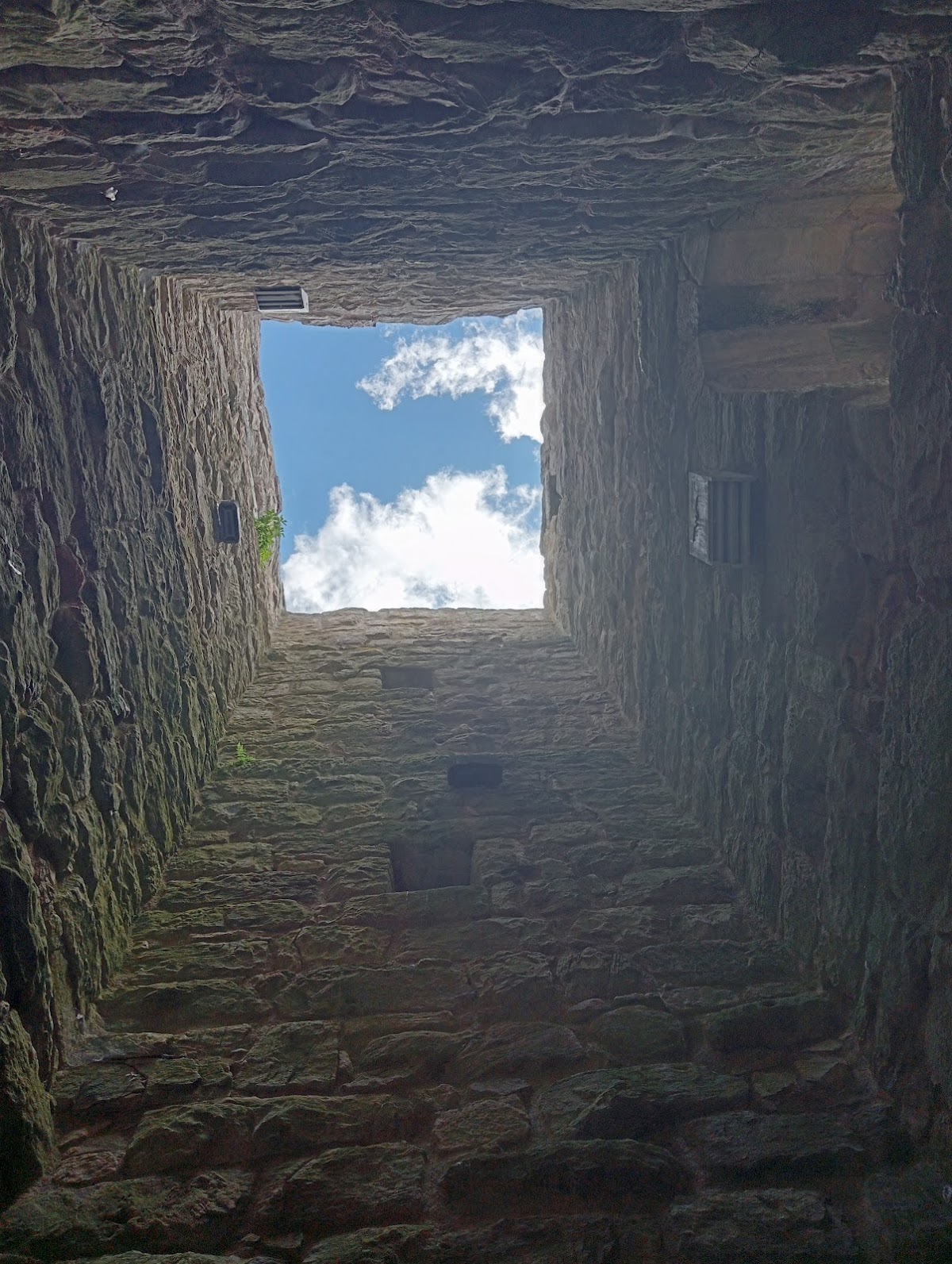 The southern bergfried is smaller and was reached originally by an external wooden staircase, a feature that today is considered unsafe for climbing. At some point in the past, the upper section of the southern tower’s walls appears to have been sealed off, perhaps as part of a later modification, though the reasons for this remain unclear.