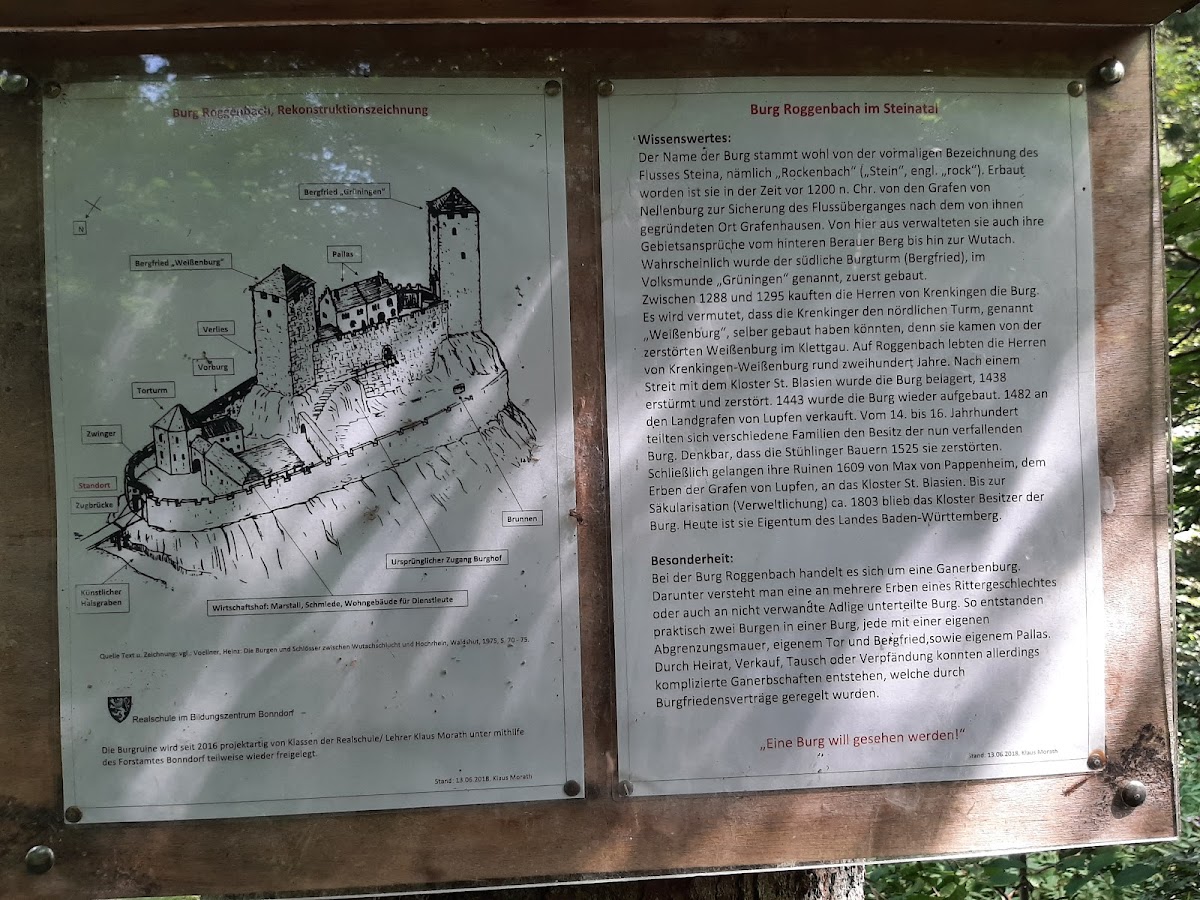 Local tradition sometimes refers to Burg Roggenbach and neighboring Burg Steinegg collectively as the “Rogèbacher Schlösser” or “Roggebach,” although earlier assumptions linking the castle to the Freiherren von Roggenbach have been disproved by recent research. Instead, the Roggenbach family’s ancestral seat likely belonged to a different, now-lost castle in Unterkirnach.