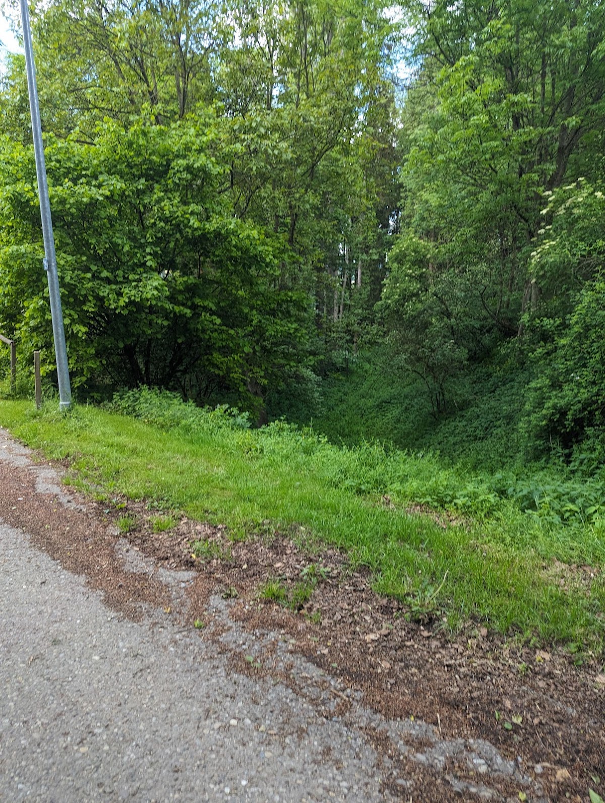 The ruins of Burg Wolfsberg occupy a wooded hill approximately 525 meters above sea level, overlooking the valley of the Zusam River near Steinekirch. Its design reflects early medieval fortification principles, featuring a core enclosed within a roughly rectangular main bailey measuring about 25 by 50 meters. Surrounding the main bailey are embankments and ditches, including a prominent neck ditch between the main and outer baileys measuring seven to eight meters in depth, which once served as a defensive barrier.