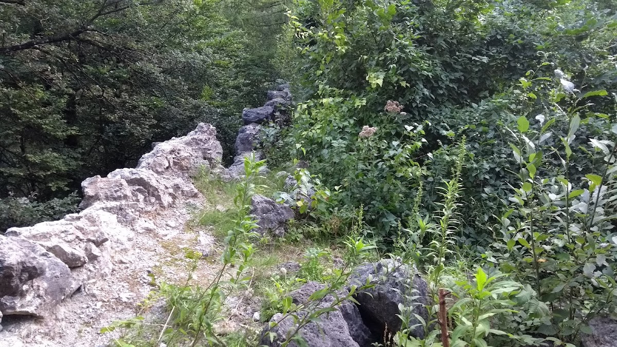 At the southeast corner of the enclosure, the foundation suggests a projecting section roughly five meters long and two meters high. This feature likely belonged to a residential building known as a palas, positioned on the southern side of the complex. The remaining area within the walls was probably used as a courtyard space. The castle’s western edge was naturally defended by a steep slope from which it was further protected by a neck ditch—a deep, narrow trench designed to prevent attackers from approaching easily.