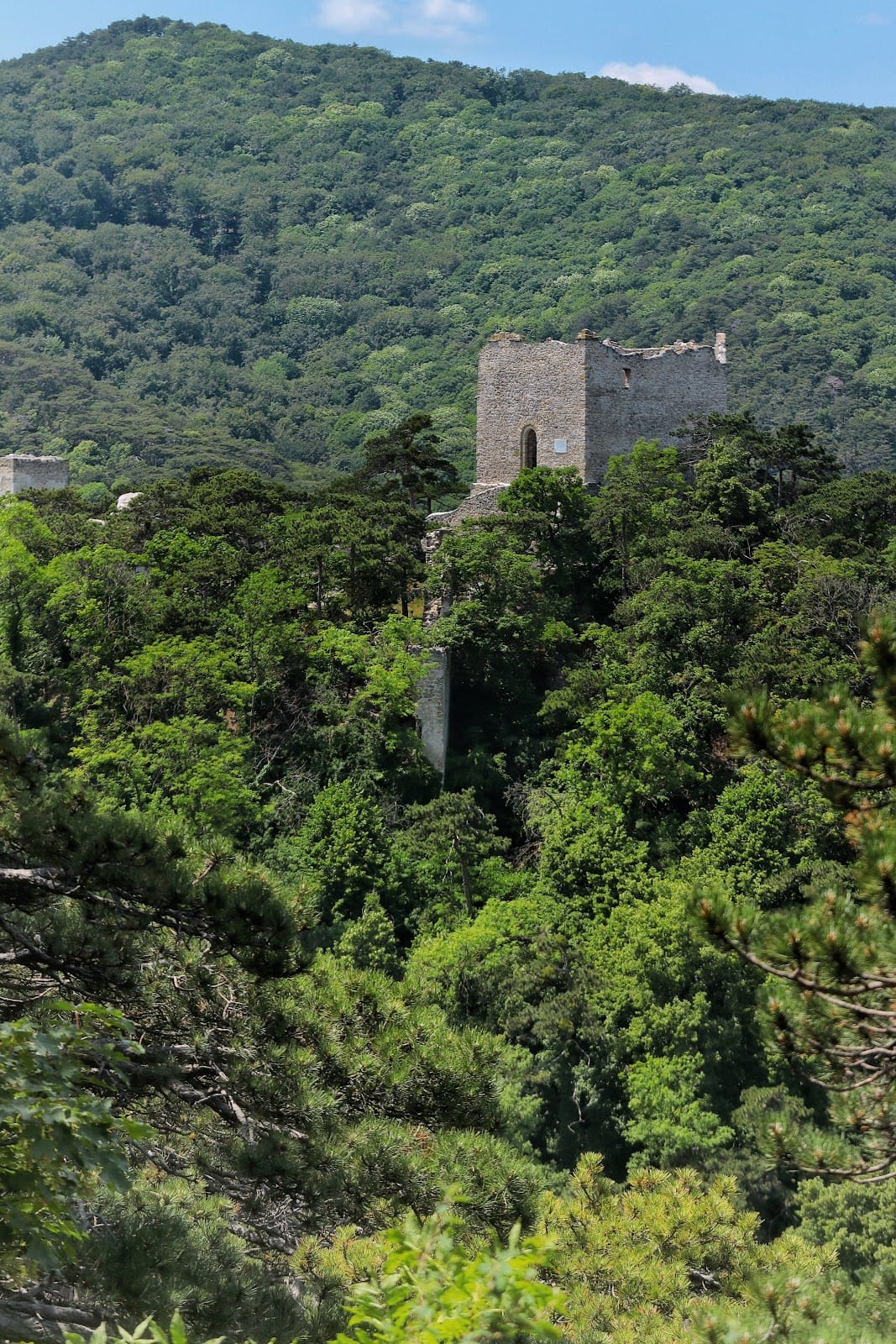 While the ruins no longer form a complete fortress, they offer a tangible glimpse into Romanesque architecture of the high medieval period. The thick stone walls, chapel foundations, and defensive positions reflect construction techniques of the time, built from sturdy local rock and mortar. These preserved fragments continue to mark the site as a significant medieval landmark in the region’s history.