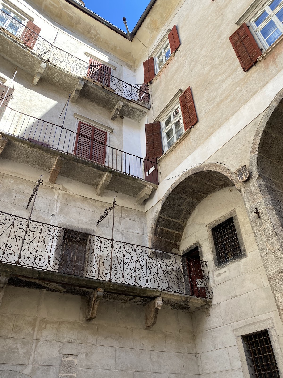 One of the most distinctive architectural elements is the Spanish Gate, built in 1566. This entrance includes stylistic details inspired by Moorish design, a reflection of the influence brought back by Giorgio Thun from Spain. Access to the castle was controlled by a drawbridge crossing a moat, typical of defensive strongholds designed to hinder attackers.