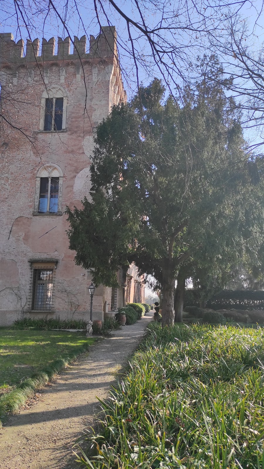 The layout of Castello di Bevilacqua reflects its initial purpose as a fortified stronghold, featuring two concentric defensive walls, each accompanied by a moat. Within the innermost perimeter stood the main castle, while the outer courtyard contained stables and housing for artisans and peasants. This arrangement highlights a clear separation between military and domestic functions.