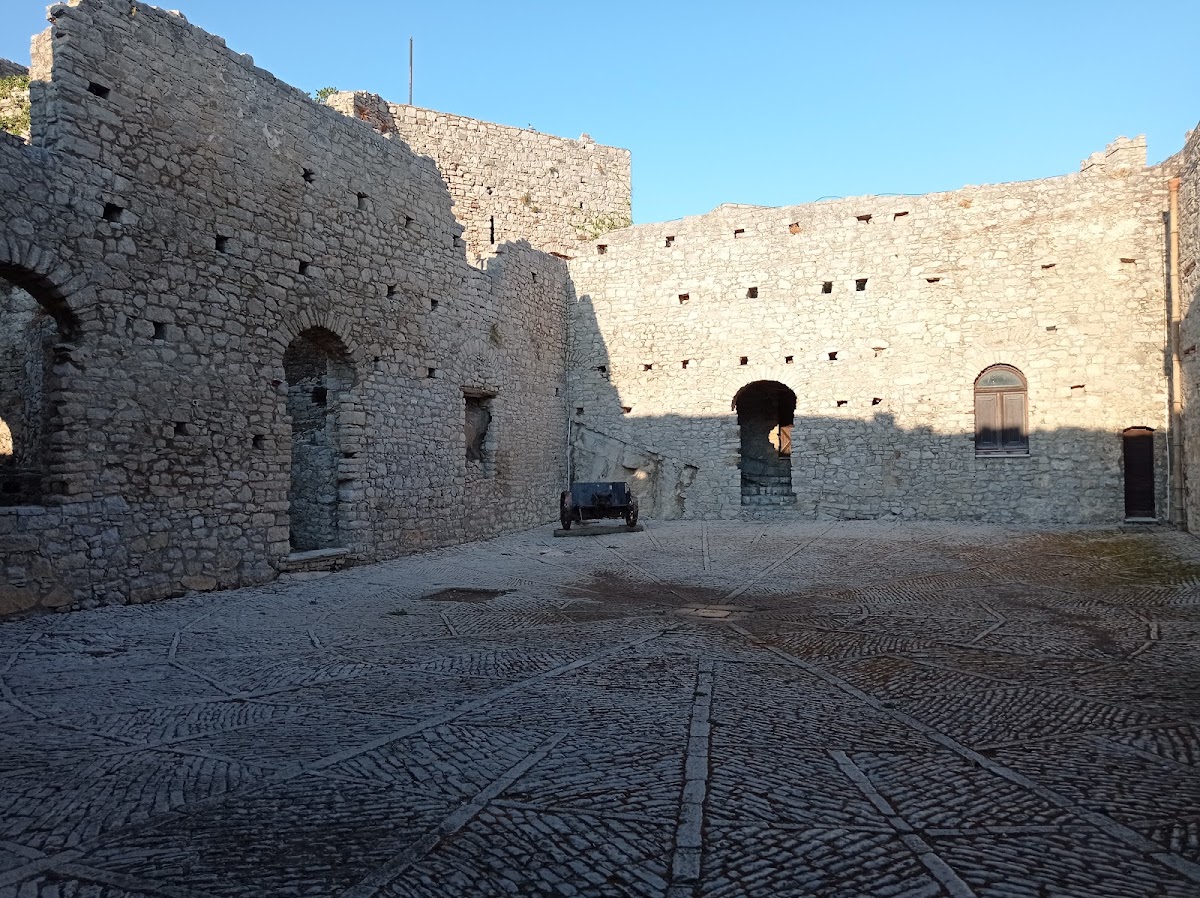 The main tower, known as the Torre Mastra, stood as a prominent element of the fortress but was severely damaged and destroyed by an earthquake in 1823. Its loss contributed to the structural decline that followed. Despite this, restoration initiatives commenced in the 1970s have sought to stabilize and preserve the remaining elements of the castle. Modern adaptations have introduced museum spaces, including displays dedicated to ancient weapons, while other areas accommodate public functions such as conferences and dining facilities. The castle’s fabric today thus embodies layers of altered use, from medieval fortress to aristocratic residence, to heritage site.