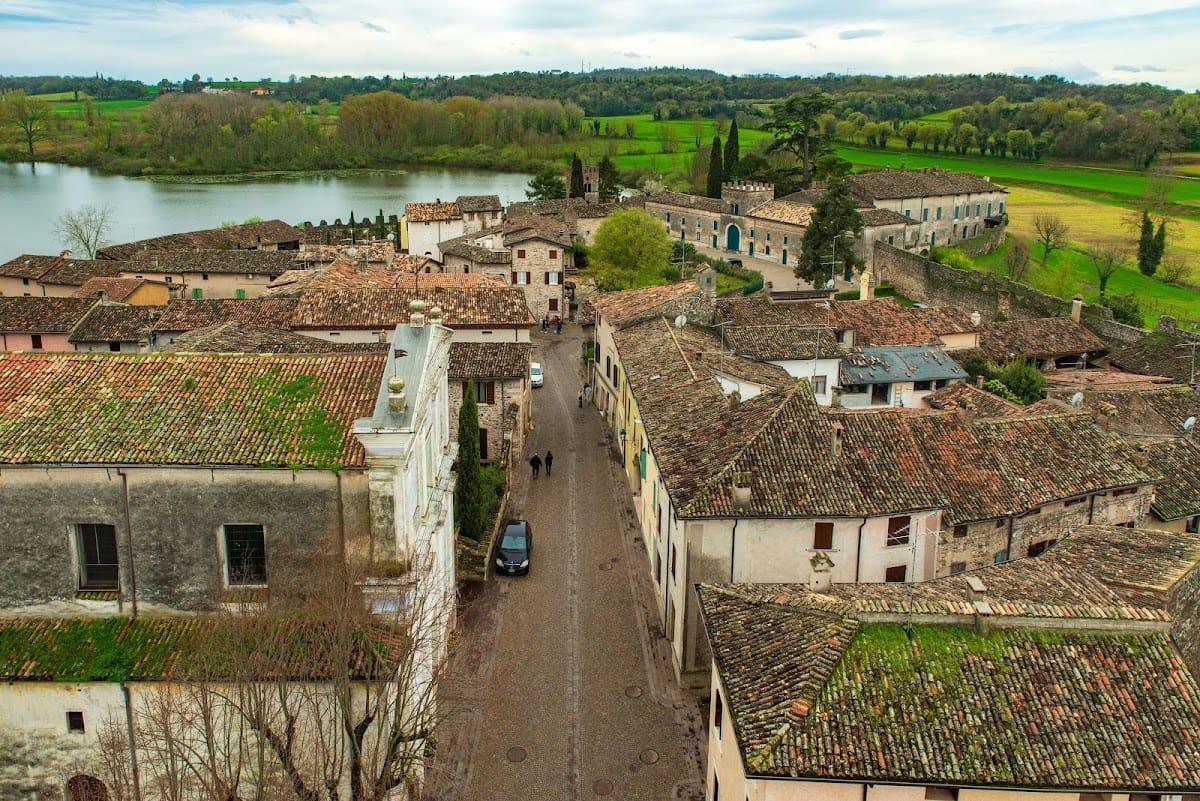 The Castello di Castellaro Lagusello is located within the small village of Castellaro Lagusello, part of the municipality of Monzambano in Italy. This medieval fortress was originally built by the Scaligeri family from Verona during the 13th century, serving both military and residential purposes.
