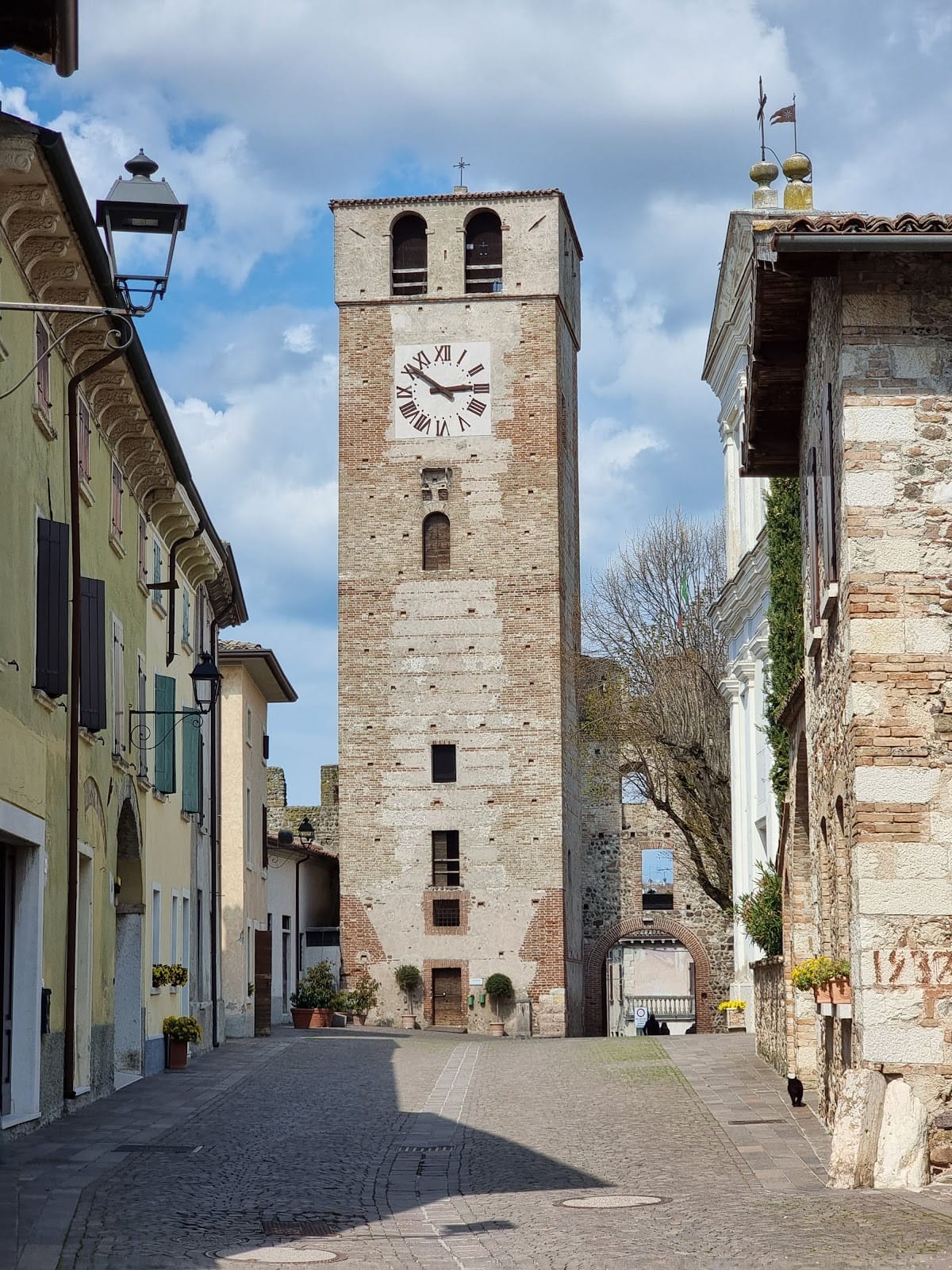 The perimeter walls include a patrol walkway called a cammino di ronda, enabling guards to move along the defenses. Particularly notable is the northern section of the castle, distinguished by a square tower paired with the original drawbridge, which exemplifies the strategic design focused on controlling access. These elements date back to the initial 13th-century construction phase.