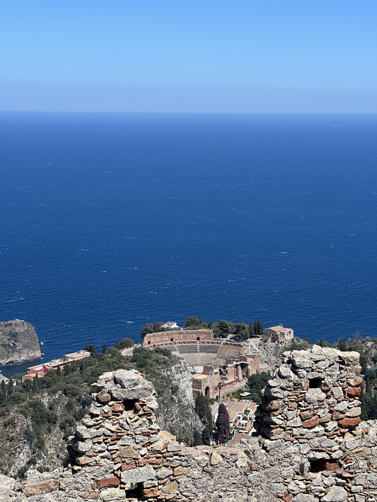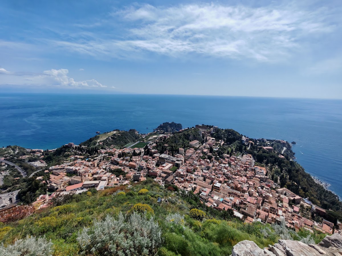 From its elevated position, the castle offers commanding views extending across the Ionian Sea, the northern Strait of Messina, to the Alcantara valley and Mount Etna in the south, and the Peloritani mountains to the west. These sightlines underscore the castle’s historical function as part of a coordinated defensive system, including the higher Castello di Mola, connected by a switchback mountain road about three kilometers in length, and the Torre Malvicino, built on royal orders.