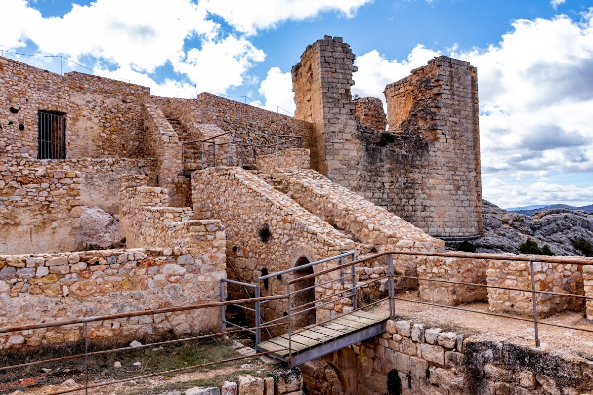 The three other towers consist of three rectangular and one triangular tower, whose vestiges have been preserved and documented. The square-shaped keep measures about 11.5 meters on each side and occupies a commanding position atop a hill overlooking the Guadalop river gorge to the north of Castellote. This strategic placement allowed control over passage through the gorge.