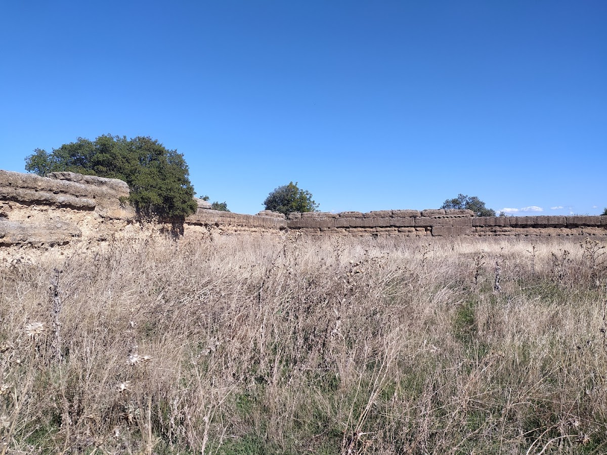 The exterior surfaces were coated with a layer of lime plaster painted in ochre color, highlighted by broad white stripes approximately two meters wide. This decorative style imitates ashlar masonry and is characteristic of Caliphal architecture, seen in other historic sites such as Córdoba’s city walls and the palatial complex of Madīnat al-Zahrā.