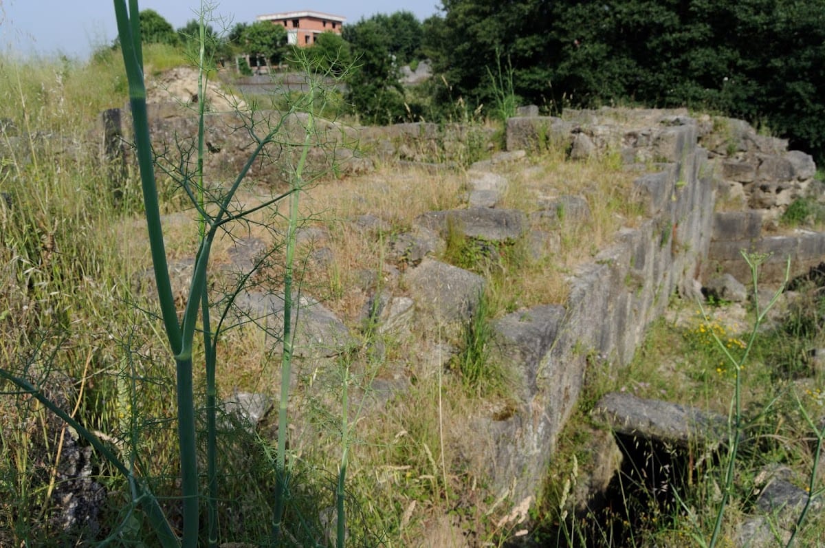 Its defensive layout comprised three concentric enclosures. Today, parts of the outer wall remain in the southeast, preserving about 40 meters of its length. The inner contour is more complete, including central structures believed to be the keep, or main tower. This keep was a four-story tower surrounded by nine circular towers, each with crenellations—crenellations are the notched battlements seen atop castle walls for defense. These towers included two named Santa Eufemia and Torre Nova, strategically placed at corners and along key walls. The main defensive complex featured gates, posterns (small secondary doors), drawbridges, moats (one containing water permanently), and barbicans—fortified outposts guarding main entrances—resulting in an arrangement likened to a small enclosed city.