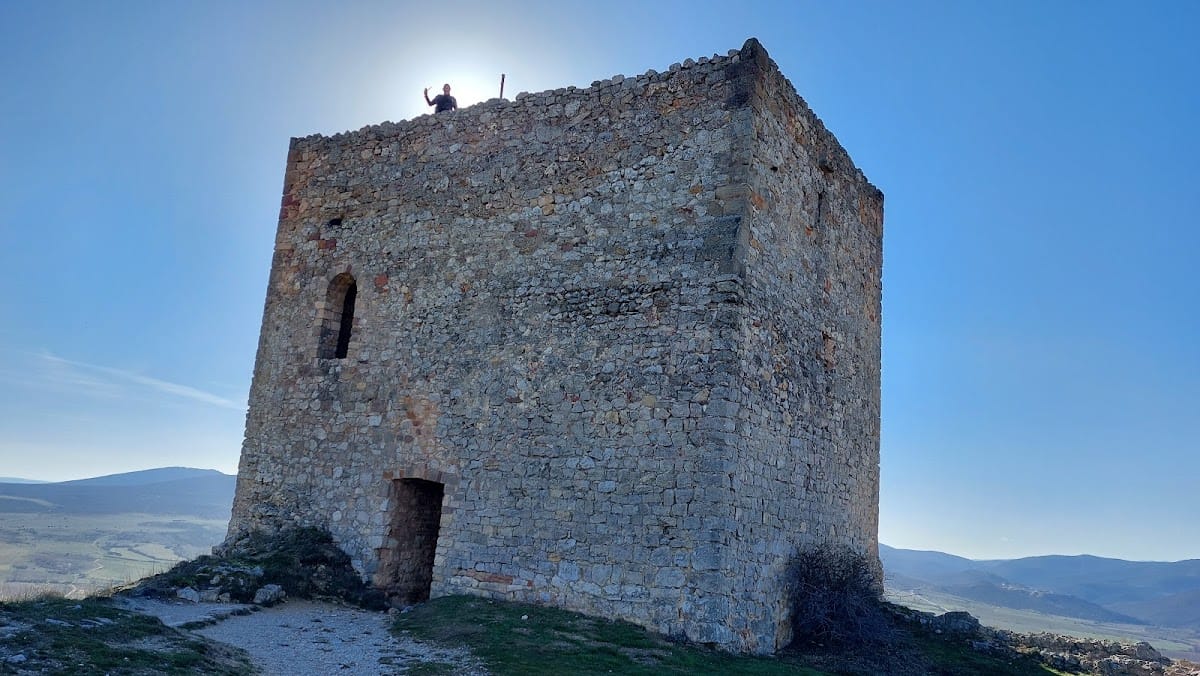 Central to the castle’s design are two large cisterns, carved into the rock and positioned to collect rainwater, demonstrating essential planning for sustaining the fortress during sieges. The main defensive tower, or keep, stands at the southernmost corner. This tower has a straightforward square layout with a ground-level entrance leading into interior rooms and a concealed staircase built within the thick walls. The staircase ascends to upper floors and a terrace that offers expansive views of the surrounding lands. Of particular note is a projecting bartizan—an overhanging turret—uniquely located at the tower’s southern corner, uncommon among similar fortifications in the area.