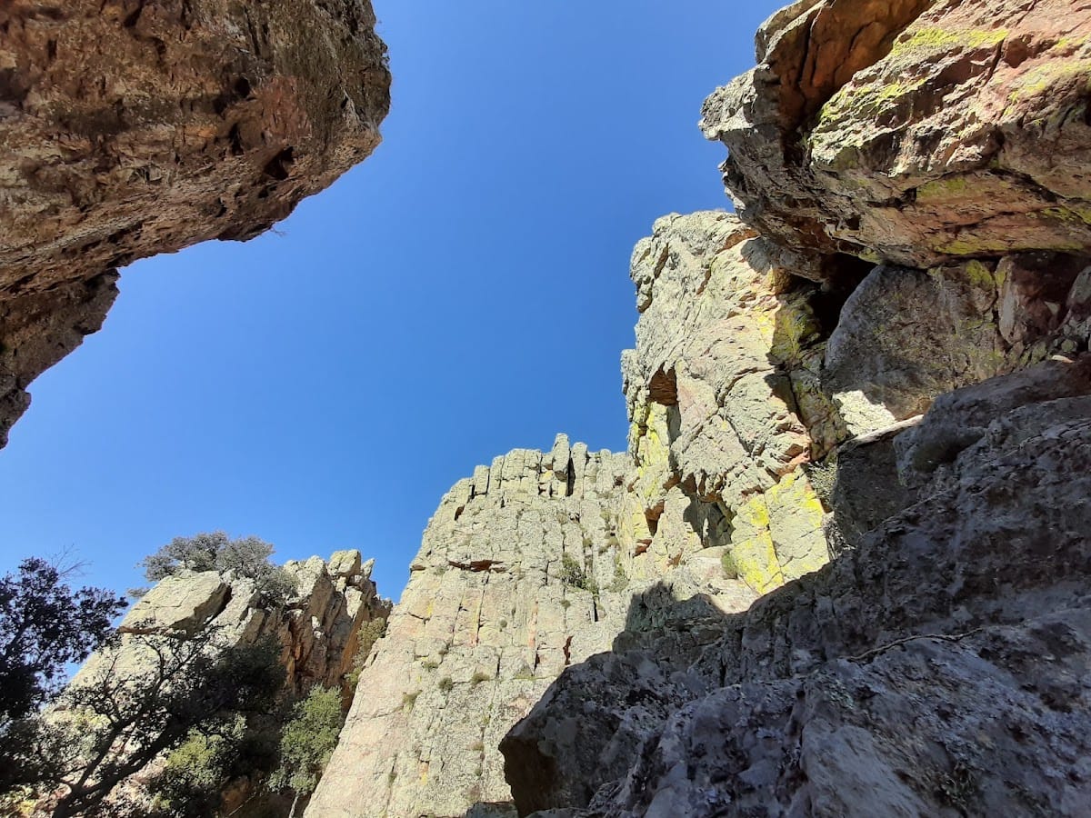 Perched on a rocky ridge, the Castle of Cabañas displays an elongated and narrow layout that conforms to the natural contours of the hilltop. The fortress walls utilize masonry and roughly squared stones, known as sillarejo, which were sourced directly from the surrounding area. This local material was likely gathered by clearing parts of the rocky summit, creating a relatively level surface suitable for construction. The site’s steep, almost vertical cliffs on several sides provide natural defensive barriers, integrating the castle seamlessly with the rugged terrain.