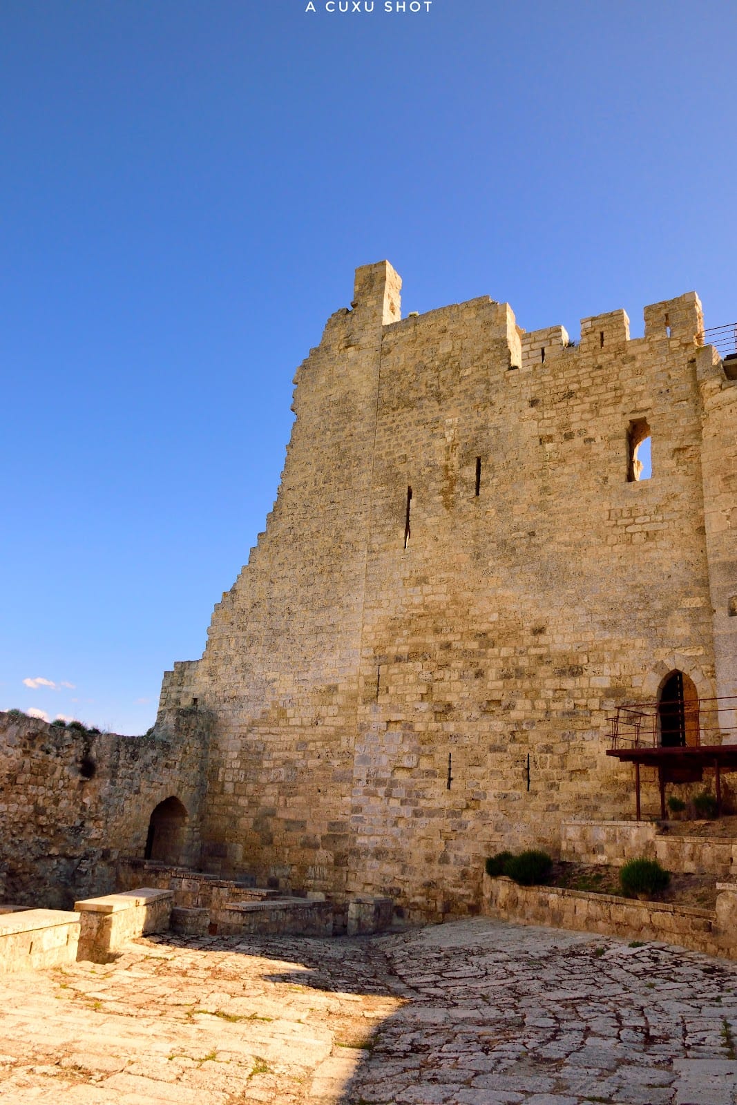Two watchtowers stand on opposite ends of the hill, providing vantage points to monitor for approaching enemies. Inside the fortress, a central open space known as the patio de armas, or courtyard, served as a training ground where soldiers could practice drills and sharpen weapons. The most fortified part of the castle likely included a keep, or torre del homenaje, which functioned as the stronghold within the stronghold. On the western side, a large tower adjoined the main body of the castle, strengthened by a prominent corner bastion referred to as a cubo, enhancing its defensive coverage.