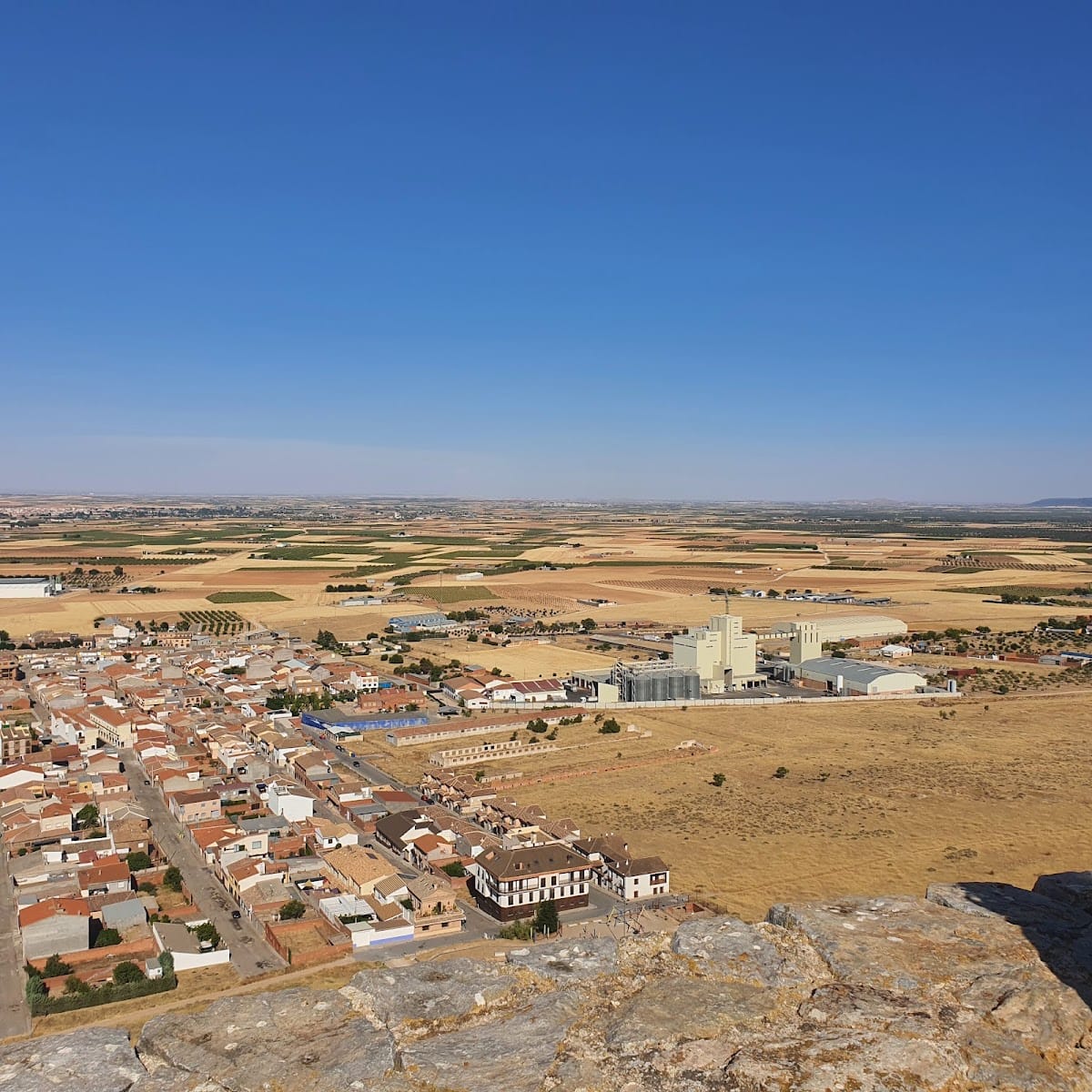 The Castle of la Muela stands on Cerro Calderico hill in the town of Consuegra, Spain. Its origins trace back to human settlement in the area as early as the 5th century BCE, evolving from an ancient site that later became the Roman town of Consabura in the 2nd century BCE. Under Roman influence, Consabura developed infrastructure including baths, defensive walls, an aqueduct, and a circus, demonstrating the area’s importance during that period.