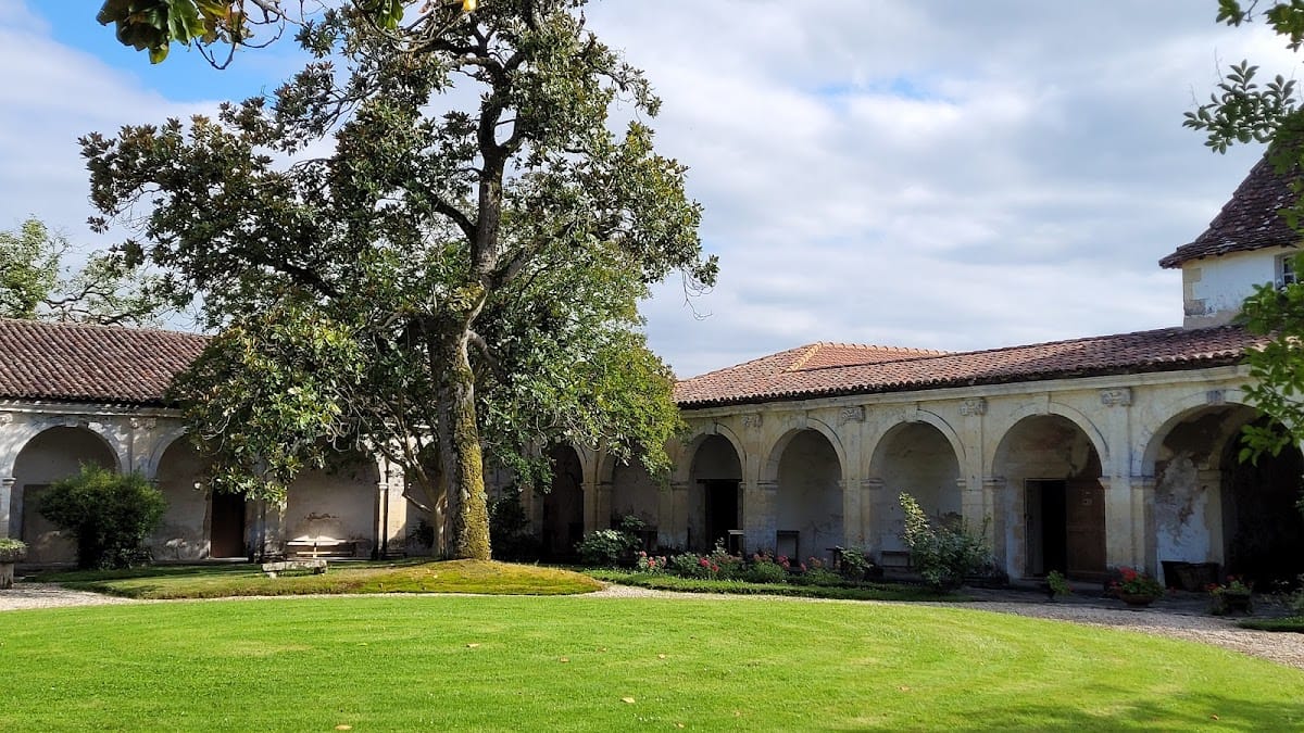 The Château de Gaujacq is a single-story building arranged around a central courtyard and an Italian Renaissance-style garden known as the “garden of delights.” The garden is enclosed by a cloister-like gallery, which, despite its appearance, was never intended for religious use.