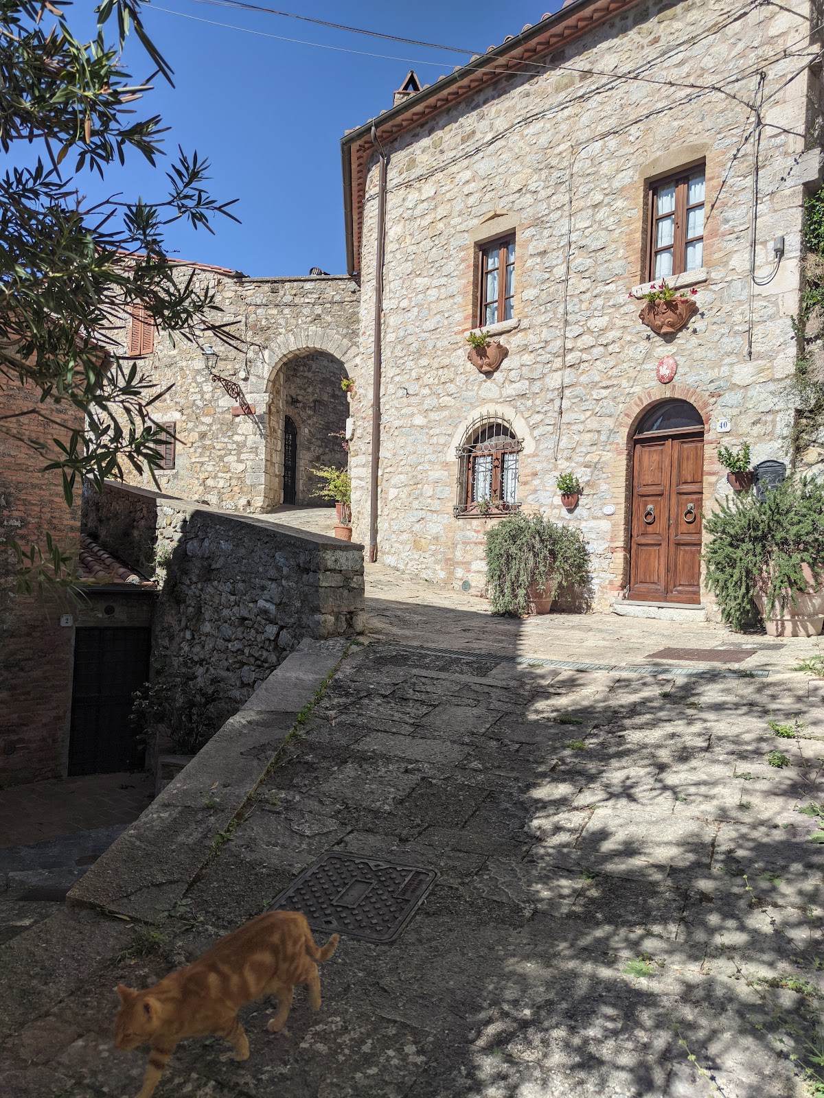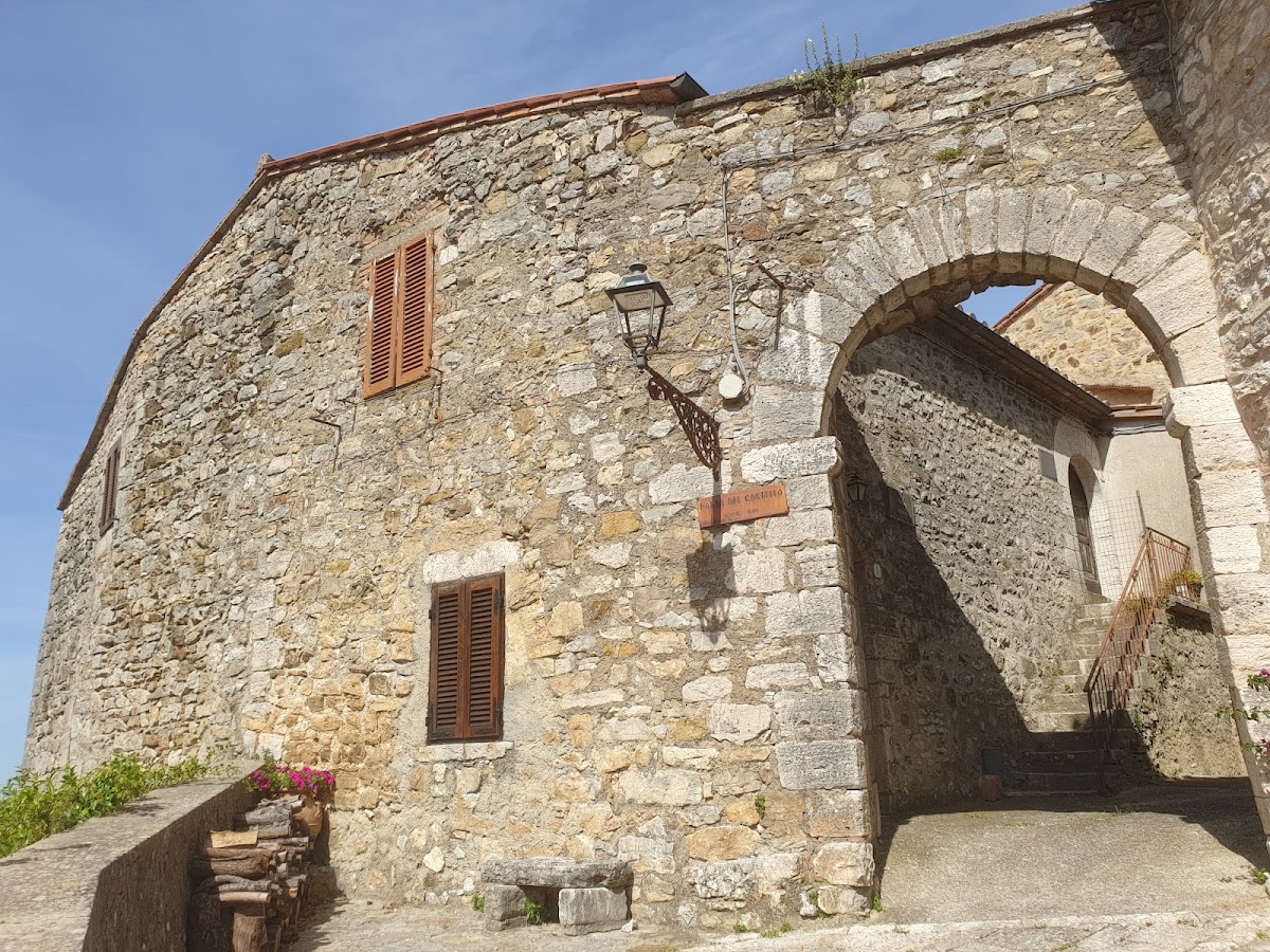 The castle complex sits on the highest point of the village and is enclosed within a defensive perimeter marked by stone walls. These walls include four watchtowers, which would have served as lookout points to monitor the surrounding area. The Aldobrandeschi fortress itself survives only in ruins along the eastern section of these walls, providing a glimpse into the original stronghold’s scale and position.