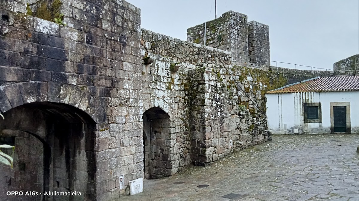 The Castle of Vila Nova de Cerveira is characterized by an oval-shaped layout following Gothic architectural principles. Its stone walls are topped with battlements, or crenellations, which allowed defenders to shield themselves while observing or fighting. A continuous walkway known as an adarve runs along the tops of the walls, providing access to different defensive points.