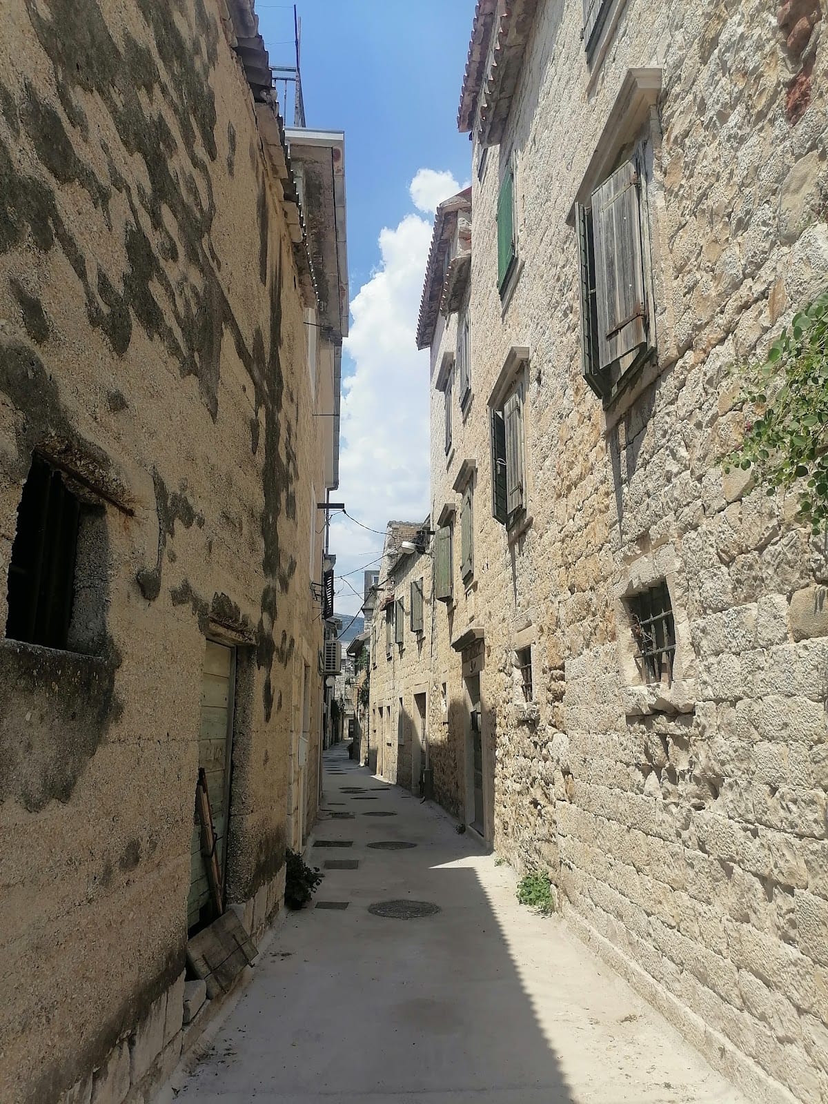 Positioned on a sea-facing cliff in the heart of present-day Kaštel Štafilić, the castle watches over the village that occupies land reclaimed from the sea between an ancient Roman road and the fortress itself, tying this historical site closely to both maritime and terrestrial routes of the past.