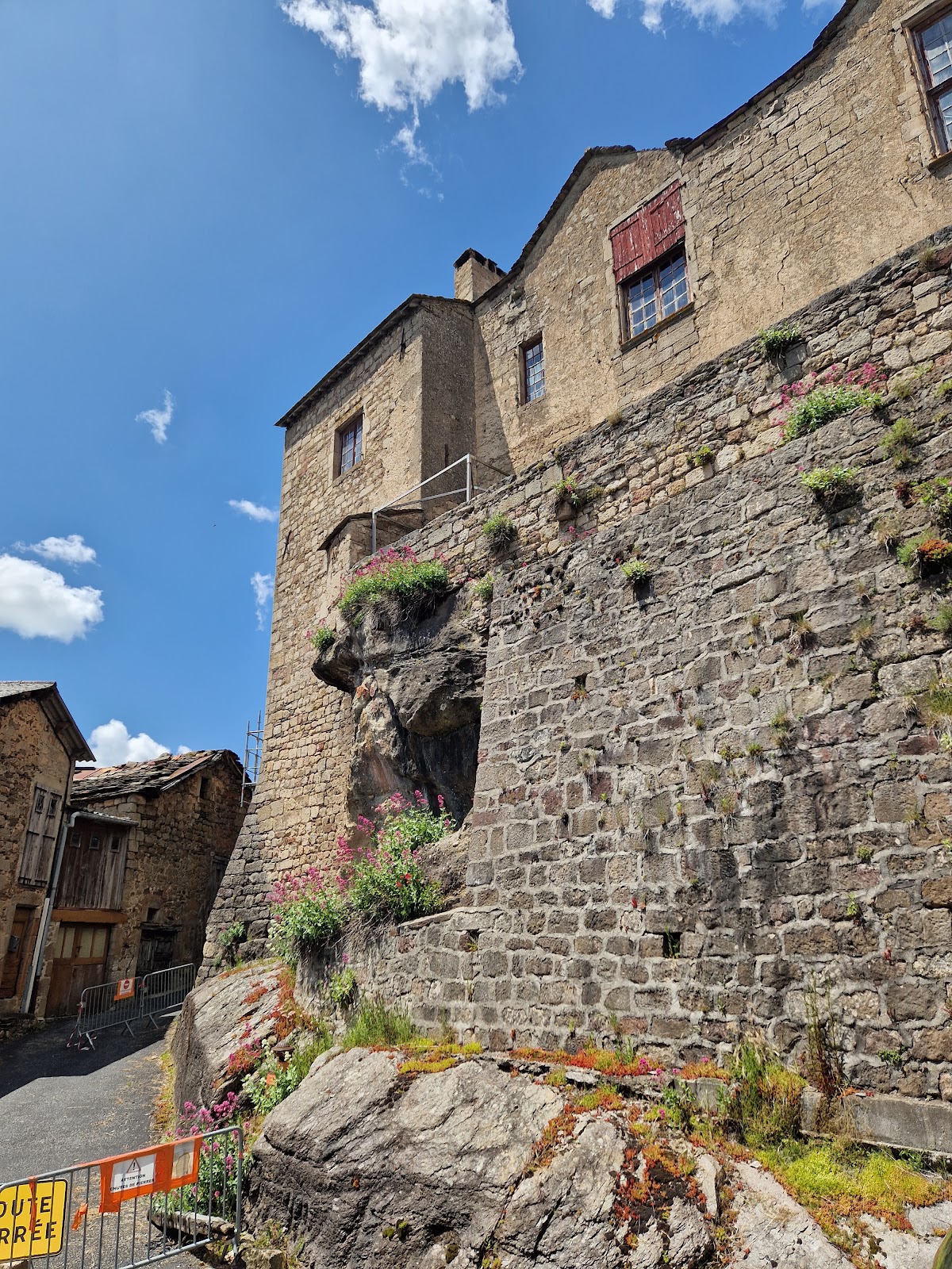 The castle presents a trapezoidal layout, anchored by its oldest and strongest structures along the southern side. This section includes two sturdy square towers occupying the corners, with the southwest tower originally serving as the donjon, or main keep, the stronghold’s primary defensive tower. The southern part features expansive barrel-vaulted rooms—rooms with ceilings shaped like continuous arches—which open through small windows onto a terrace. This terrace overlooks the village and commands extensive views over the surrounding Muse valley and distant mountain ranges such as the Causses, Cévennes, and Montagne Noire.
