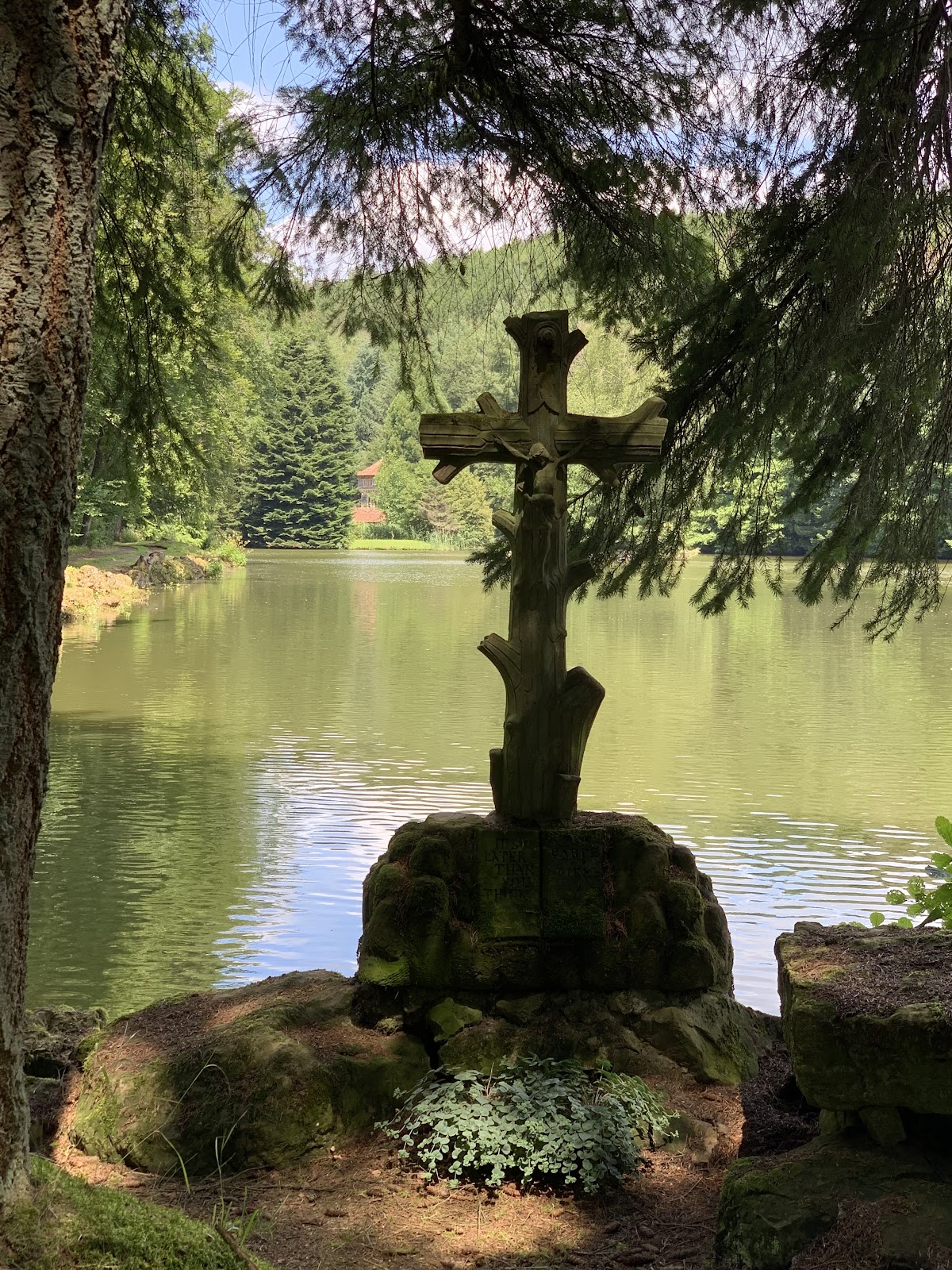 The site’s development began in 1964 when Pol Gilson, then municipal secretary of Mäerzeg, obtained permission to construct a wooden weekend retreat. Accompanying this chalet was a project to restore a former pond, which was reshaped into an artificial island where the building stood. This initial phase marked the modest beginnings of the site, rooted in personal leisure rather than fortification or administration.