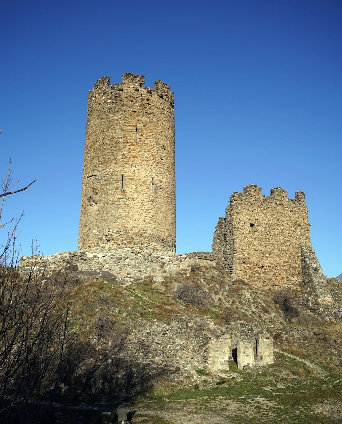 The ruins of Châtel-Argent occupy a roughly rectangular area measuring about 90 by 70 meters. This space is enclosed within a sophisticated triple series of defensive walls, designed to protect a considerable number of inhabitants, up to 2,000 people, suggesting its strategic importance in controlling the main valley. These fortifications were likely intended to withstand significant military pressures and secure the site against attack.