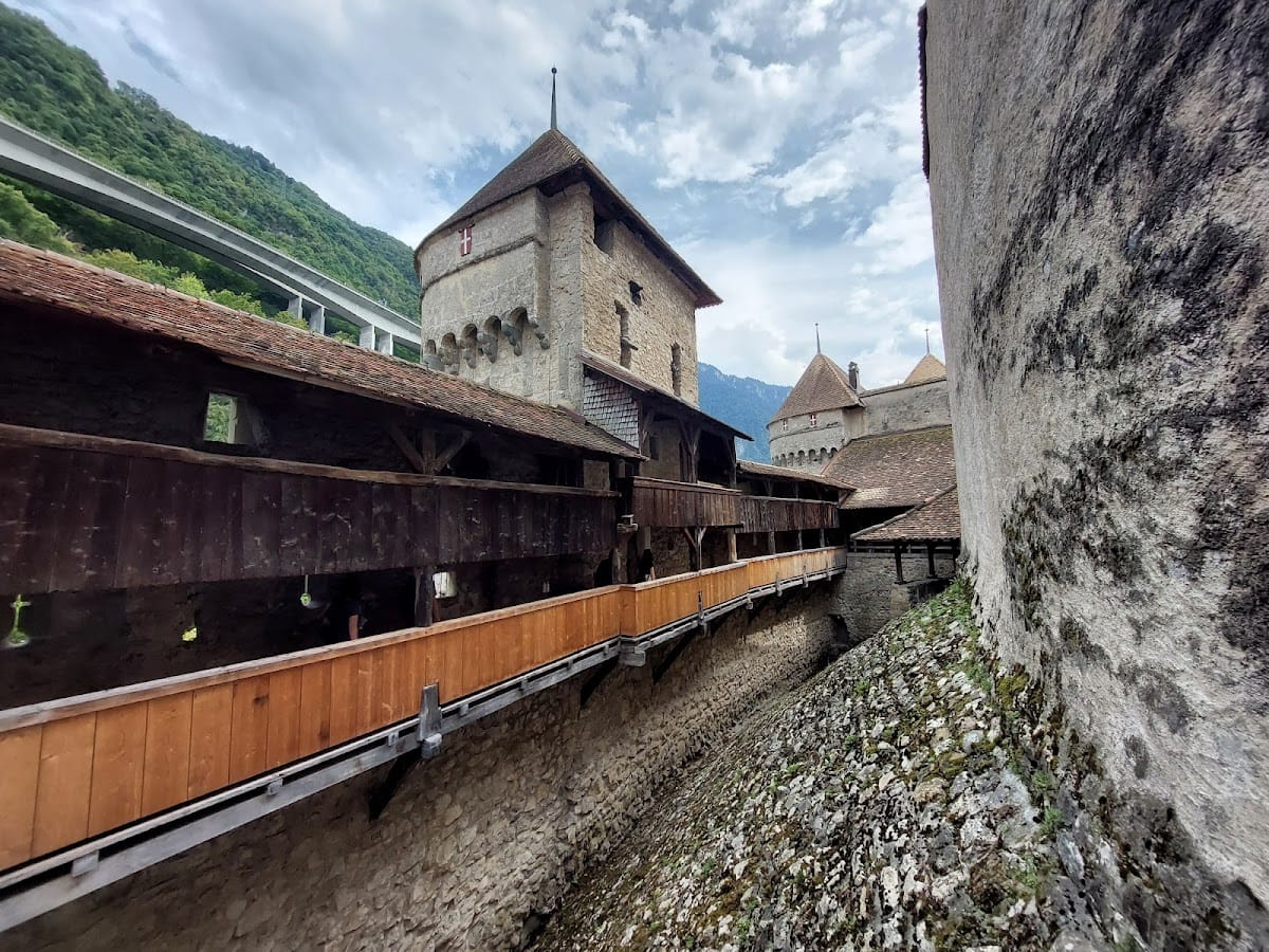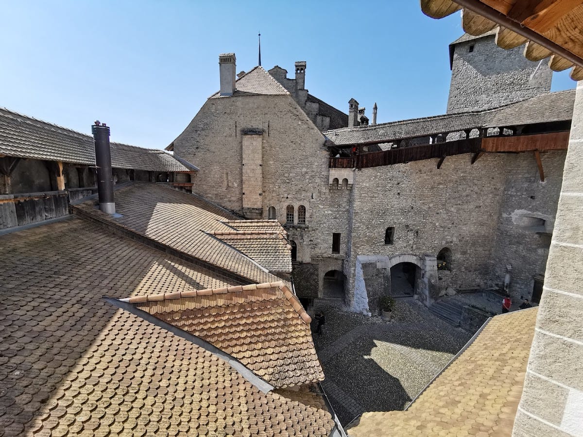 Restoration efforts from the late 19th century onward involved detailed archaeological documentation, structural consolidation, and partial reconstruction. New additions were clearly marked to distinguish them from the original medieval fabric. Access to the castle is provided by a bridge built in 1861 over the railway line, one of Switzerland’s oldest iron bridges, with a roof added in 1937. The surrounding area includes a Savoyard park listed among Switzerland’s historic gardens and a lakeside promenade connecting Montreux and Villeneuve. Modern visitor facilities were added in 2020 to support the site’s preservation.