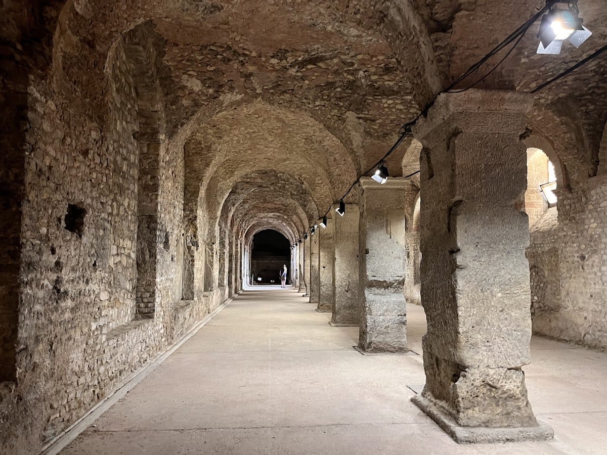 The Cryptoportique de Reims is a U-shaped underground gallery measuring about 52 meters in length and 5.7 meters in height. It was built as a horreum, a Roman grain storage facility, beneath the modern Place du Forum.