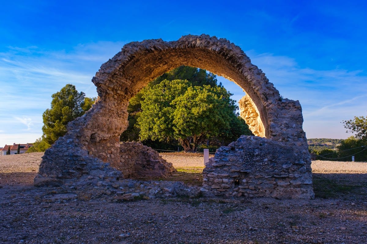 The villa occupies a gently sloping hill overlooking the Mediterranean Sea, strategically positioned near the Via Augusta and the Gaià River. This location facilitated agricultural exploitation and communication with Tàrraco. The complex is divided into a residential sector facing south and a productive agricultural zone on the northern and western slopes, demonstrating a clear separation of leisure and workspaces.