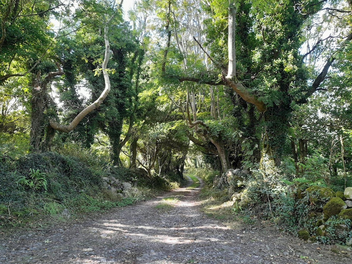Additional features enrich the archaeological narrative nearby. There are sacred and ritual sites such as Tobar na Croiche Naoimhe, which includes a Gothic arch and cross marking a pilgrimage location where excavations in 1840 uncovered human skulls and evidence suggestive of early pagan sacrifices. Another nearby pilgrimage well, Tobar Cornain, is surrounded by a 19th-century structure built in the style of Gothic revival architecture. The site’s setting includes the ancient earthwork Dough Branneen, an old burial mound; the sacred stone named Keger; and the nearby Iron Age Celtic fort called Dun Fergus. This fortification is notable for its circular design and natural caves beneath, reflecting early settlement and defensive strategies in the region. Together, these features create a rich landscape of continuous human presence ranging from prehistoric to medieval times.