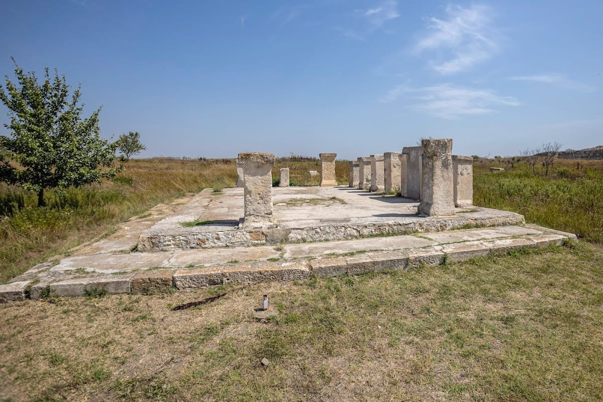 The preservation of Histria’s ruins varies across the site. City walls and fortifications survive as partial foundations and low walls, with some reconstructed sections stabilized for conservation. The acropolis temples and public buildings are mostly fragmentary, with foundations and architectural fragments exposed. The baths and basilicas retain substantial masonry remains, though roofs and upper structures are lost. Residential buildings survive as foundation outlines and partial walls. The necropolis tumuli are well-preserved earthworks with stone features.