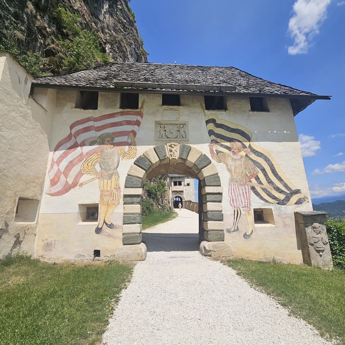The gates are often richly ornamented with marble reliefs, inscriptions, and heraldic emblems. Some depict Georg II von Khevenhüller in full armor alongside religious motifs. The castle’s elevated position offers wide views of nearby mountain ranges and valleys, enhancing its defensive role and presence.