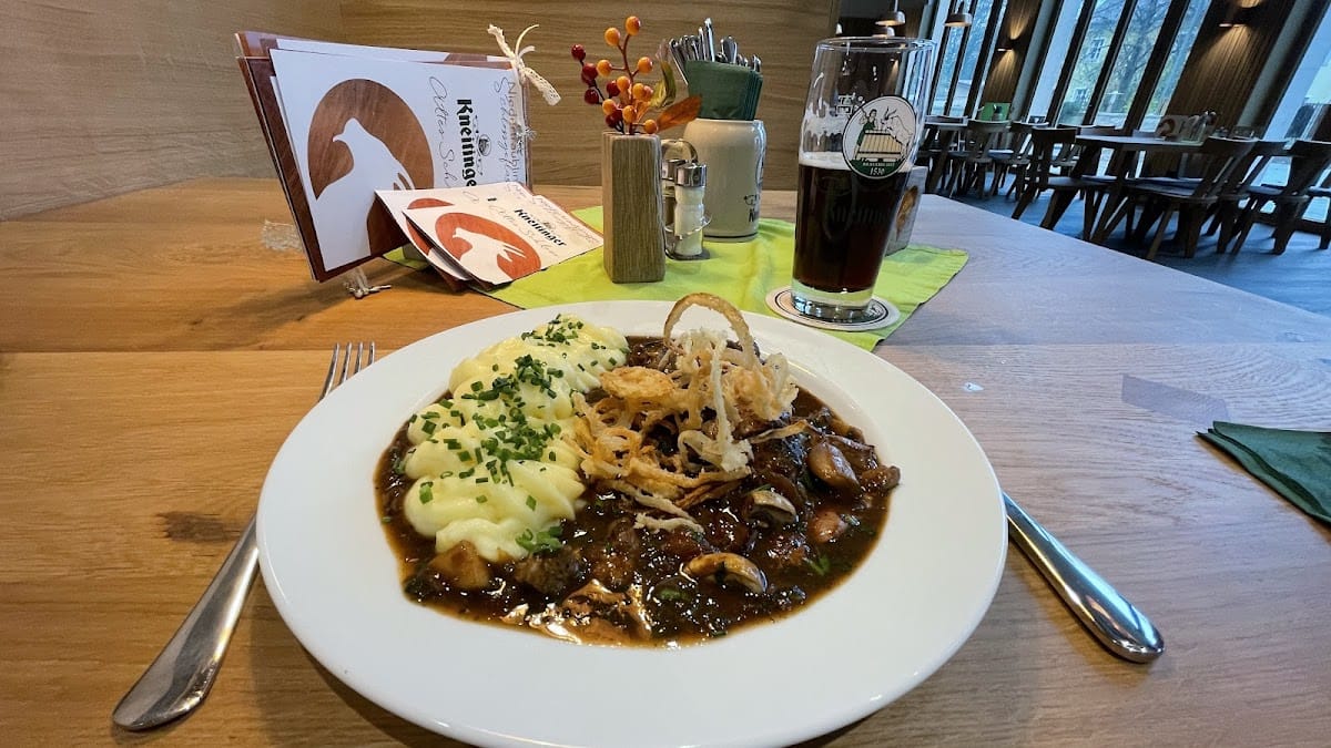 One surviving building is a two-story administrative house with a hipped roof, dating to the late medieval period. This structure would have been central to managing the estate’s affairs. Nearby stands the former brewhouse, identifiable by its three stories, gabled roof, and distinctive architectural details such as vaulted entrances and segmental arched windows. Above its entrance, an inscription marks the year 1595, preserving a precise date for its construction or renovation.