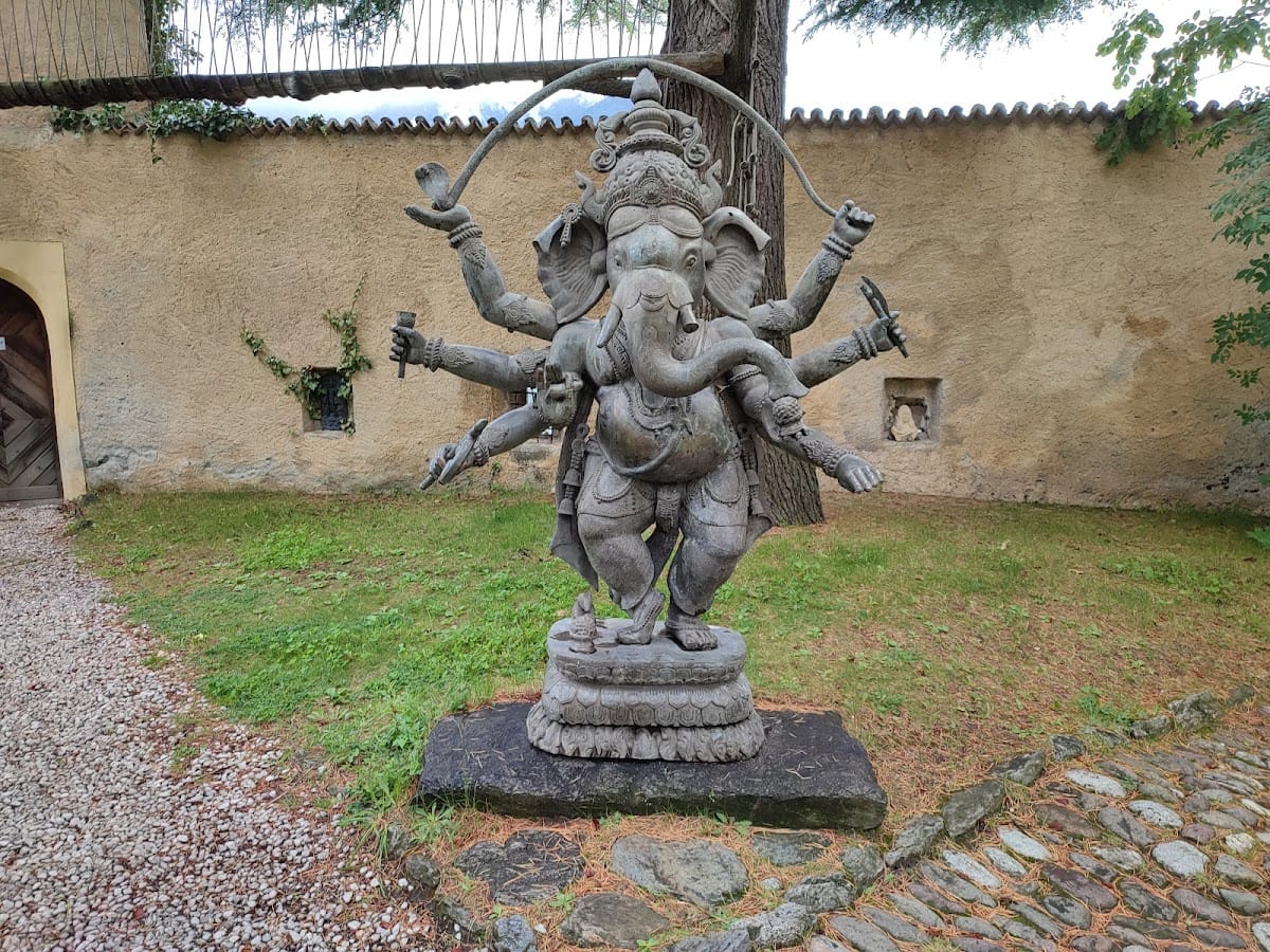 In the early 20th century, architect Adalbert Wietek’s restoration included stabilizing decayed walls and preserving original materials, despite resistance from regional monument authorities. The castle complex now features a courtyard that serves as a display area for part of the Tibetan art collection introduced by Reinhold Messner. Items such as a statue of Ganesha, a mask representing Bhairab, and a figure of the Hindu god Shiva as Nataraja illustrate the ethnographic scope on exhibit.