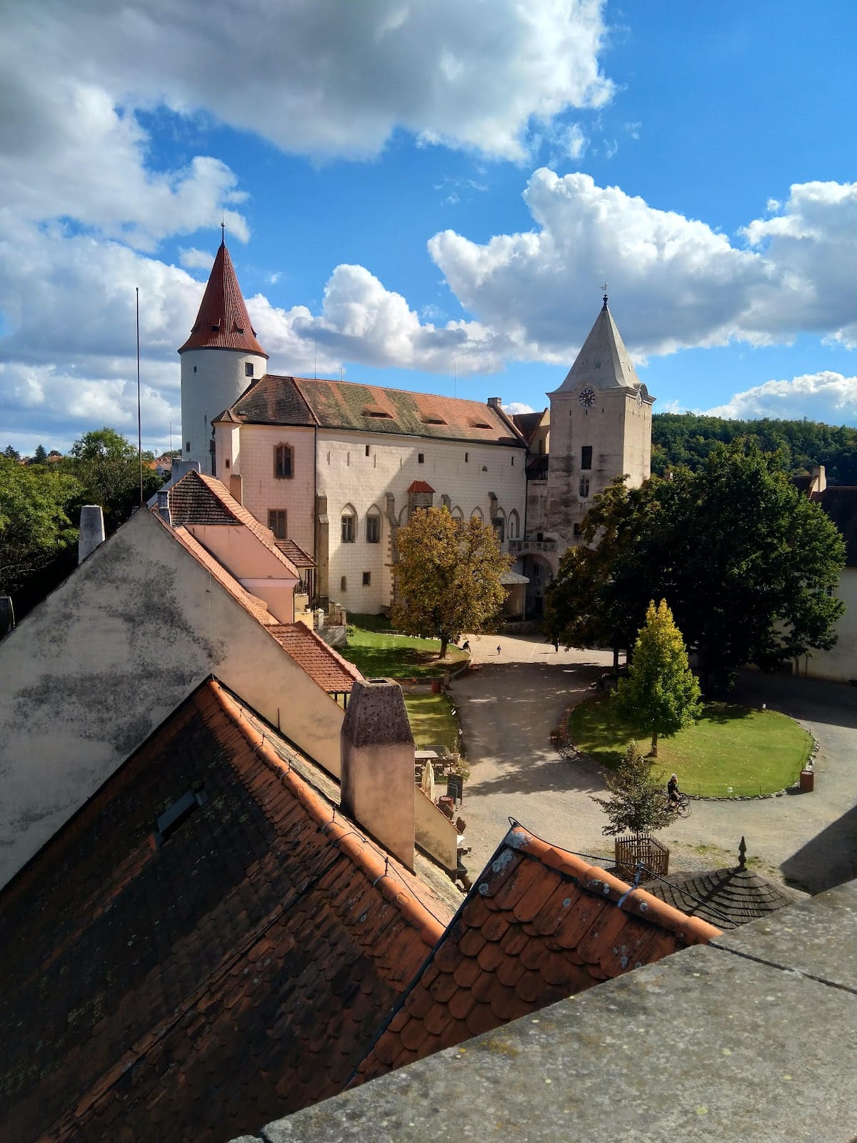 Several functional buildings occupy the lower court. Among them is the old brewery, now repurposed for administrative use, and the Hejtman’s House. The Purkrabství served as the burgrave’s residence, or the castle’s governor. The Huderka Tower, within these precincts, is famed as the place where Edward Kelley was imprisoned. Nearby is a well more than 40 meters deep, matching the height of the castle’s main tower, a vital source of water deep below ground.
