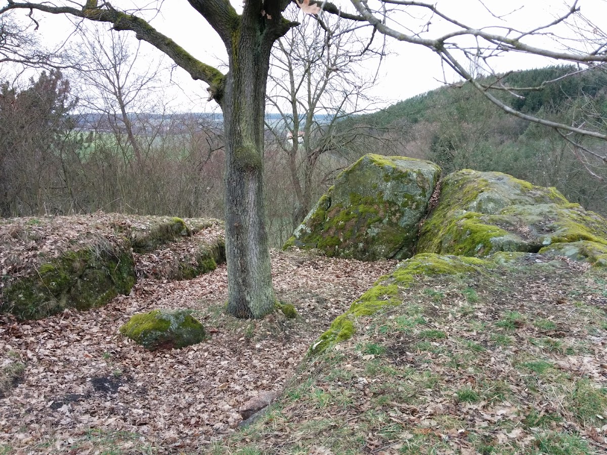 Today, the visible remains of Komberk consist primarily of these earthworks and traces of the fortifications, indicating the castle’s strategic design and construction methods. Recognized as a cultural monument, the site offers insight into medieval military architecture adapted to the natural hillside setting on which it was built.