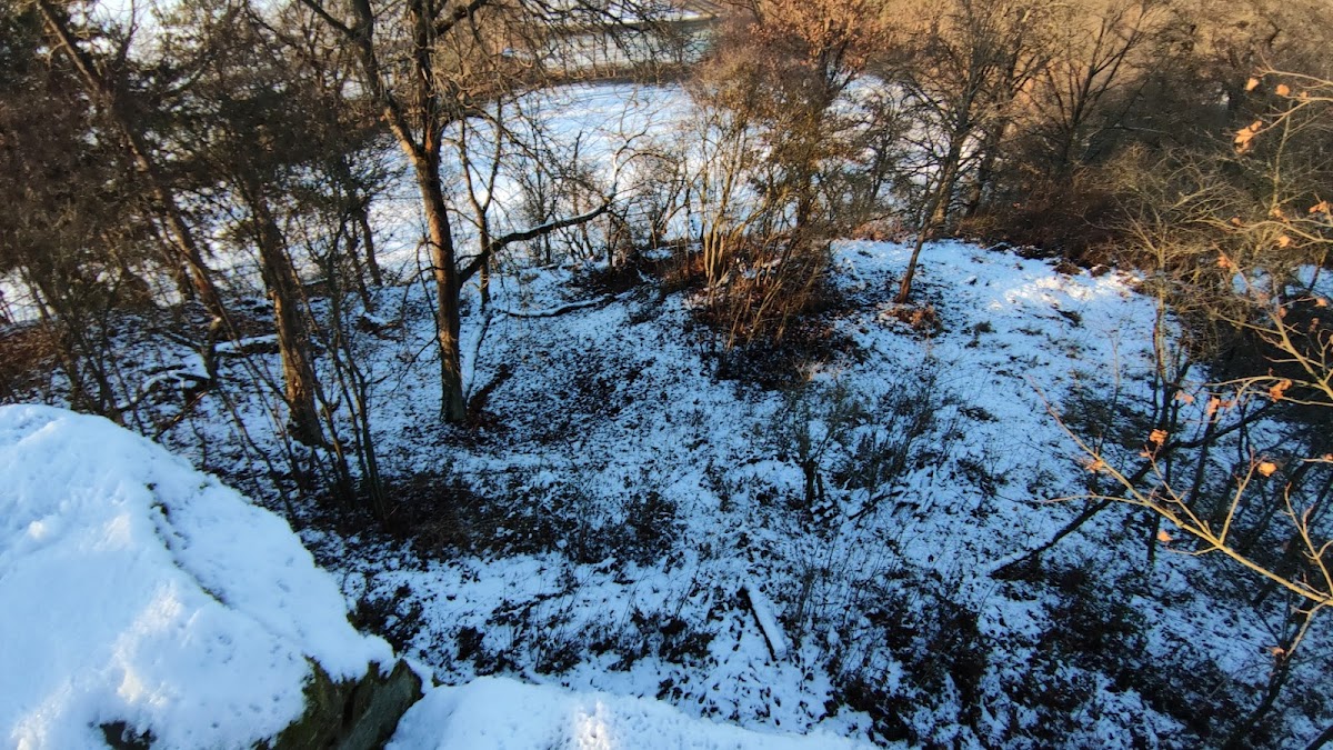 Opposite this building lies a circular hollow interpreted as an earth cellar or zemnice, a type of underground storage common in medieval fortifications. The core was enclosed by a wooden palisade, which was strengthened in the south by a semicircular barbican—a defensive outer work designed to protect the main gate or vulnerable walls. Another barbican was situated lower on the slope, providing additional defense for approaches to the castle.