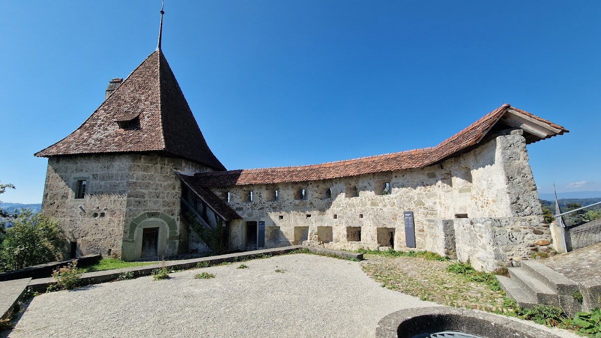 The castle cafeteria uniquely incorporates visible fragments of the original Romanesque outer walls of the bergfried, or main tower, which are considered rare survivals within Swiss heritage sites. Additional modifications include a stair ramp constructed between 1580 and 1599 and the bailiff’s residence built from 1648 to 1650. Together, these layers of construction and renovation illustrate the castle’s evolving role as both a fortified residence and an administrative center across the medieval and early modern periods.