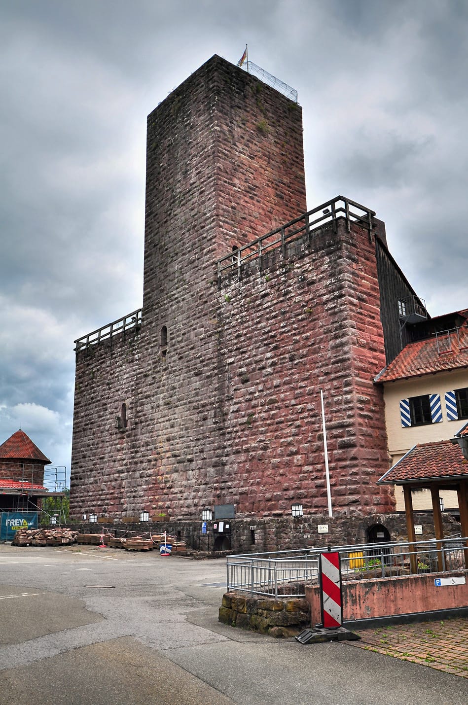 Integrated into this wall is the castle’s square keep, or bergfried, measuring roughly 9 by 9 meters at the base. This six-story tower stands 32 meters tall and is notable for the high entrance positioned six meters above ground level, originally meant to enhance security. Like the shield wall, the keep’s walls are two meters thick and built from the same rusticated ashlar masonry. It also contains a garderobe, an early form of latrine built directly into its structure, reflecting practical considerations of medieval castle living. Today, the keep serves as a viewing tower, allowing access to its upper levels.
