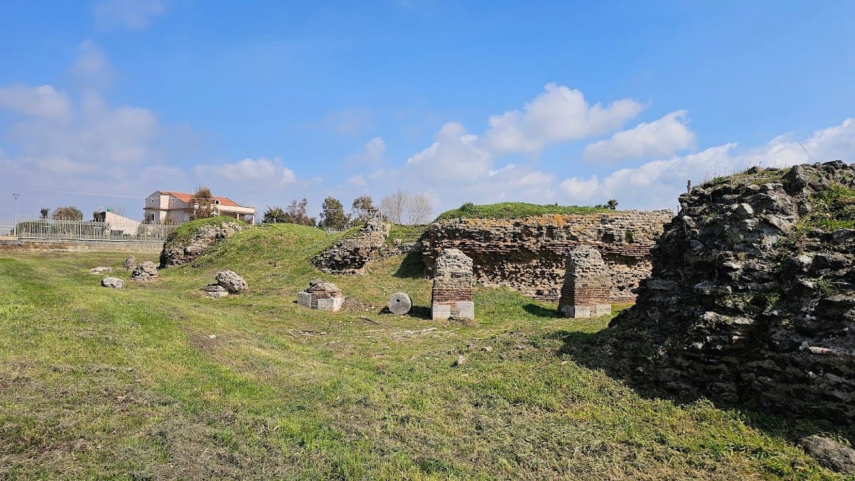 Situated on the northern side of the forum, the Capitolium dates to the 2nd century BCE and was partially excavated during the 1930s. The remains consist of foundations and wall fragments constructed with squared stone blocks. The temple’s rectangular plan aligns with typical Roman Capitolia dedicated to the Capitoline Triad. Although detailed architectural features are fragmentary, its location adjacent to the basilica and forum underscores its religious significance within the colony’s civic center.