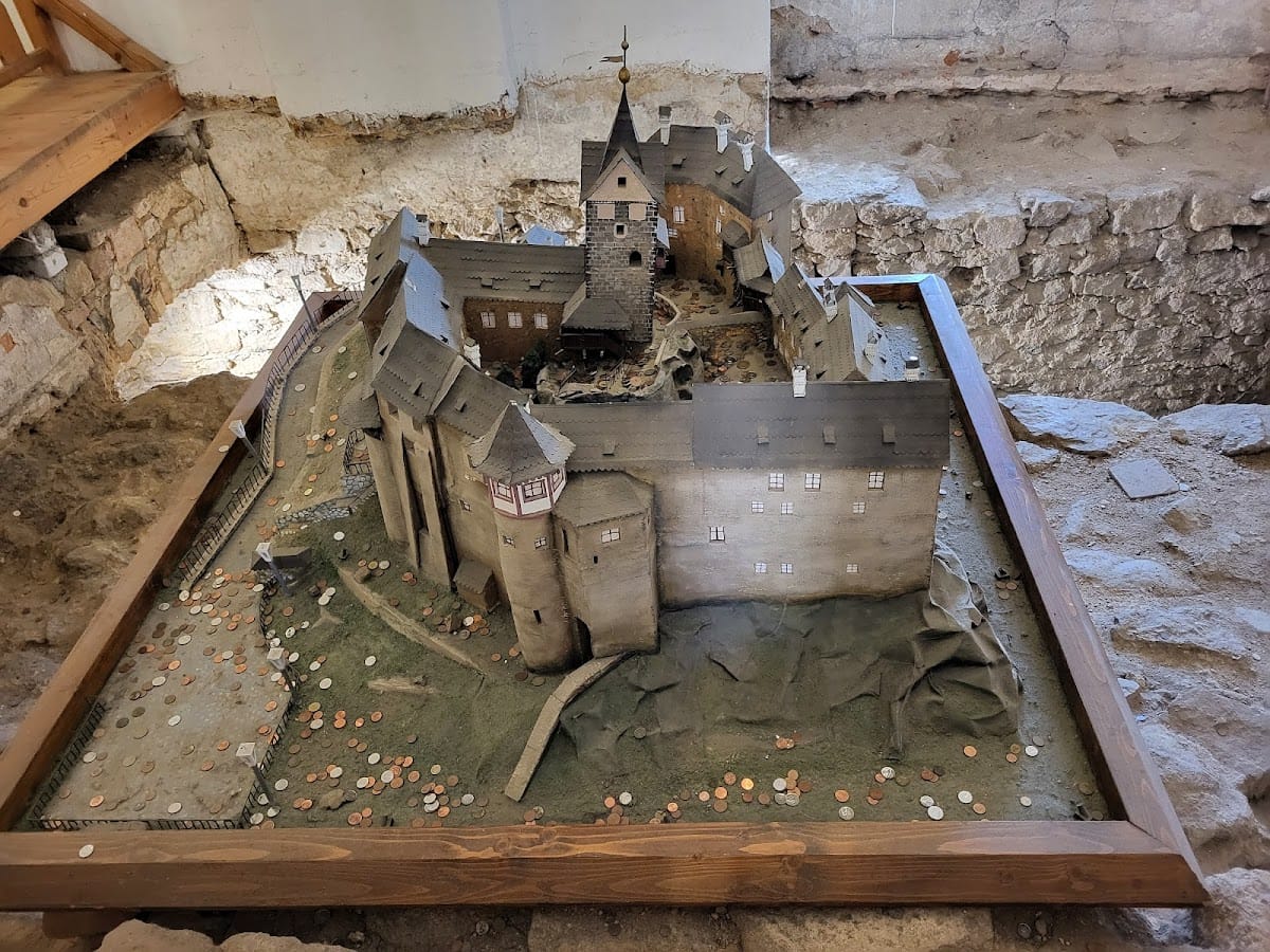 The Margrave’s House, initially built in Romanesque style, was refined into its current form by 1907. It now functions as a museum exhibiting local porcelain and includes several historical tombstones near its entrance. The castle complex is made up of nine distinctive sections: the Margrave’s House, the remains of the Romanesque rotunda, prison cells, a torture chamber, halls used for weddings and ceremonies, exhibits displaying historical arms and archaeological finds, a Romanesque polygonal tower, the burgrave’s house dating from the 15th century, the captain’s house, and a 16th-century two-winged palace with associated fortifications.