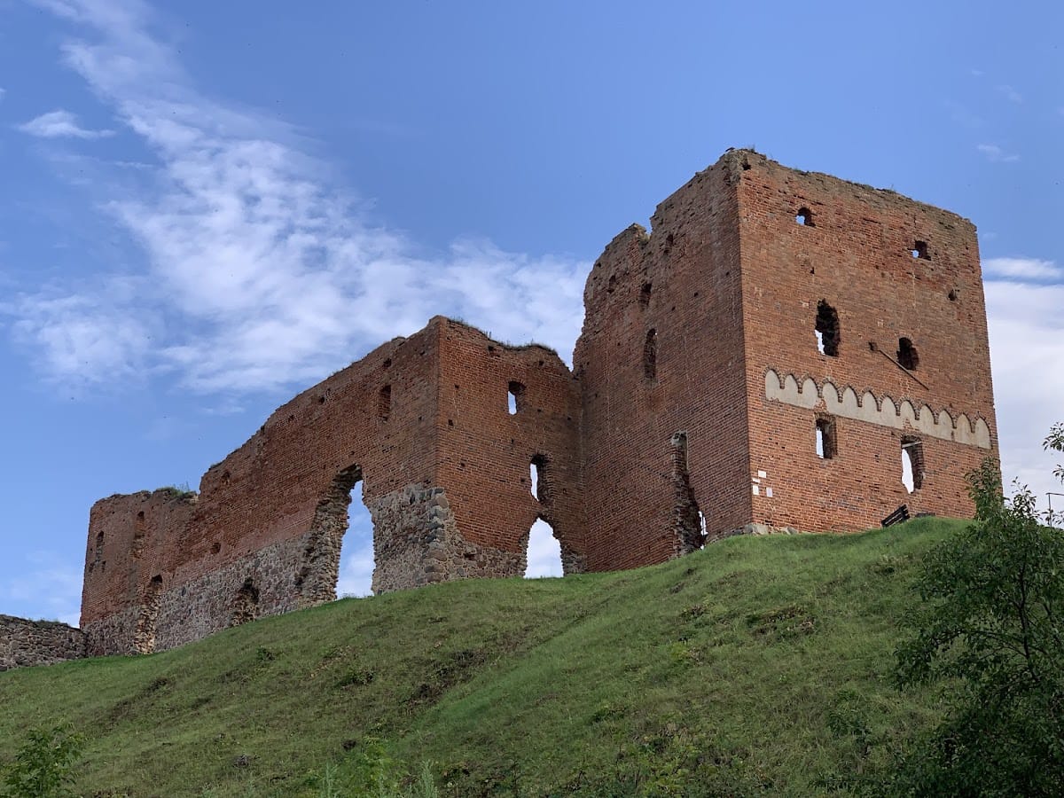 Within the inner bailey, the large square tower contained vaulted cellars, a main living floor, and upper chambers. Historical inventories from 1599 describe a wooden gallery running along three sides of the enclosed courtyard, suggesting a cloister-like arrangement reminiscent of convent buildings. The second bailey likely contained a medieval Roman Catholic church, later replaced by a Lutheran church built by the local starost Laurenz Skarbek after the Livonian War changed the religious and political landscape. In modern times, a white Catholic church with two towers was erected on this site in 1995, maintaining the location’s long-standing sacred association.