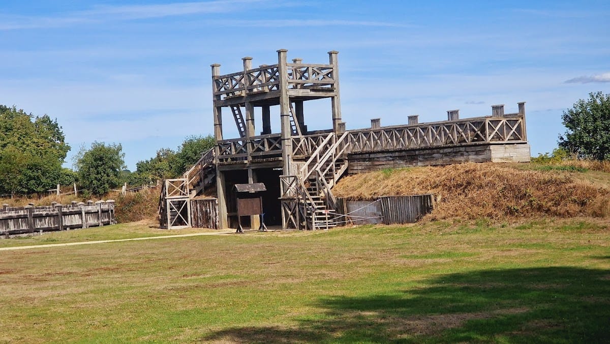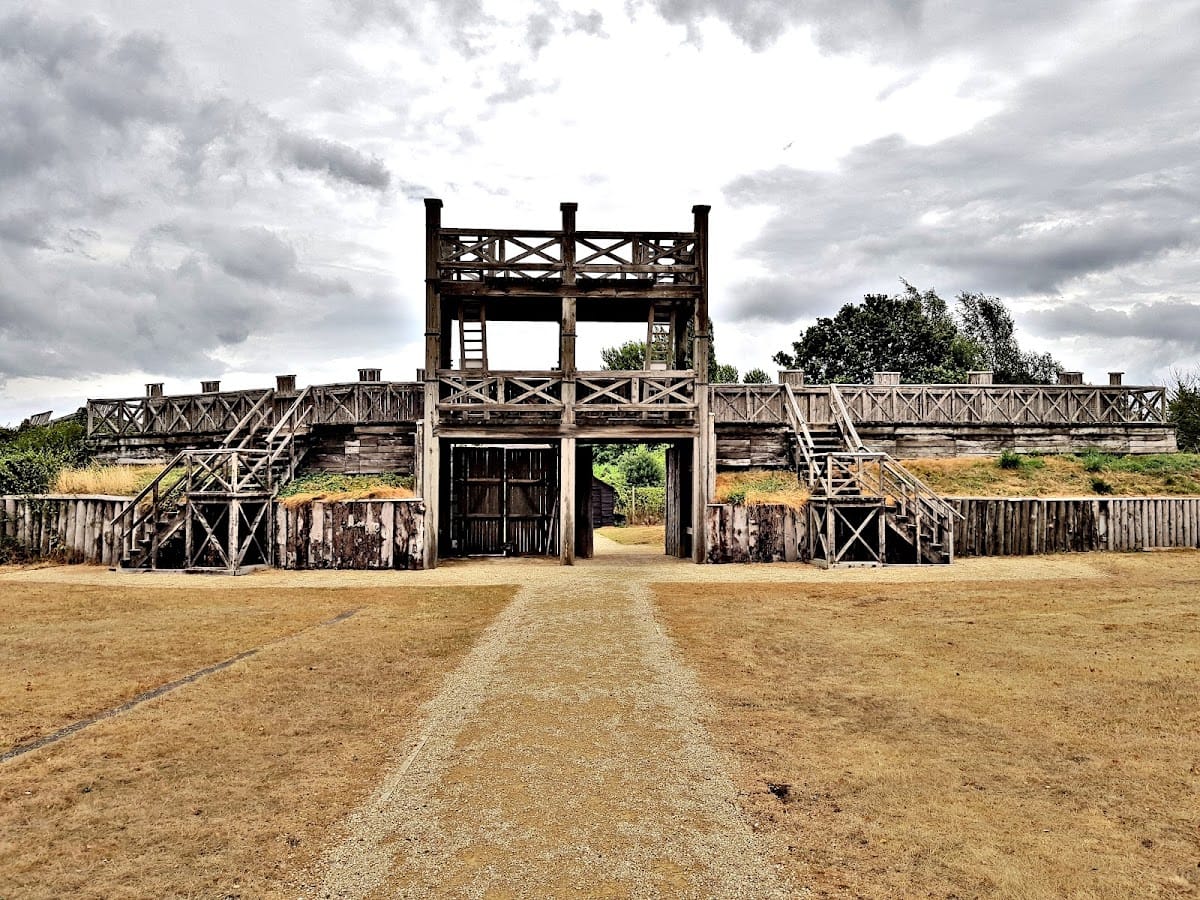 Partial reconstructions on the original foundations include a section of the fort wall, a gateway inspired by images from Trajan’s Column, one granary now used for museum displays, and the gyrus. These reconstructions allow a clear understanding of the fort’s unique features and layout. Archaeological finds at the site also include Roman Samian pottery, a coin of Emperor Nero, and a gladiator’s ring, alongside Anglo-Saxon artifacts discovered during later excavations.